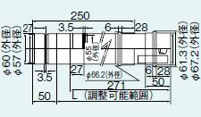 リンナイ 部材【EFS-615NJ】(21-8802) φ60KPスライド管 L=150〜220mm〔GH〕