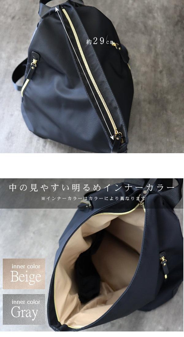リュック レディース ナイロン 軽量 背面ファスナー おしゃれ マザーズリュック 口折れ 送料無料