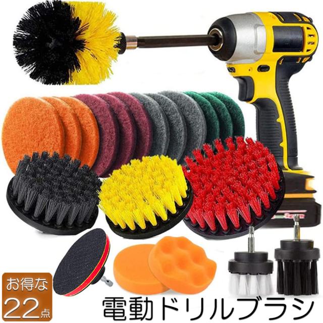 掃除 電動掃除用ブラシ ドリル 22点セット 電動ドリル用ブラシ 六角軸電動ドリルに適応 研磨仕上げ 磨きツール ポリッシャー 精練パッド 研磨パッド スクラブスポンジ キッチン バスルーム タイル掃除 洗車用