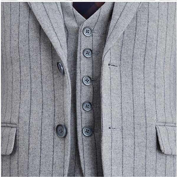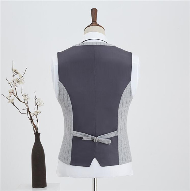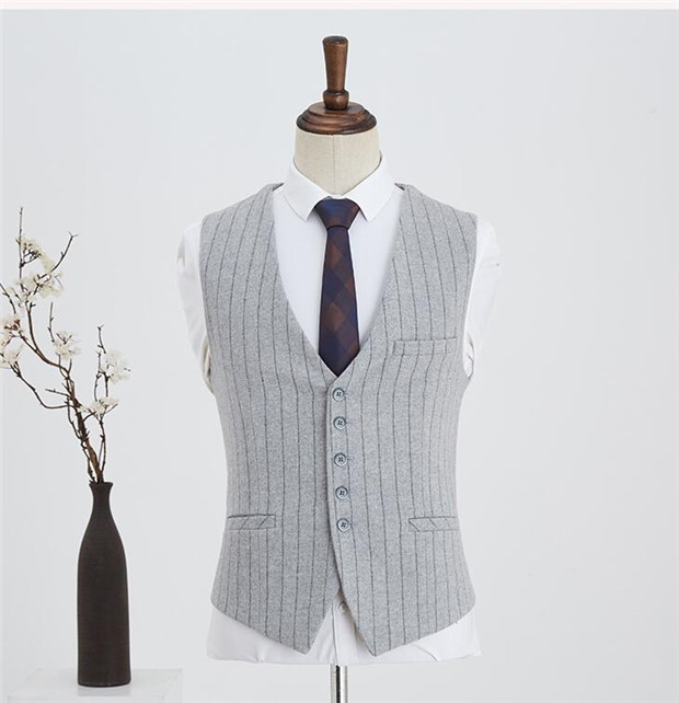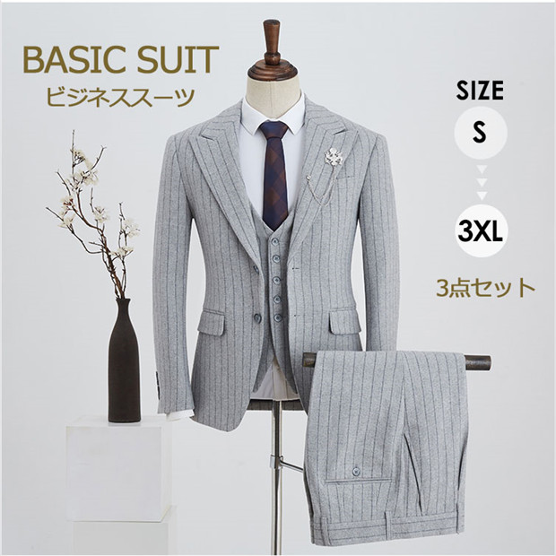 【送料無料】フォーマルスーツ メンズスーツ ウール ビジネススーツ 3点セット 縦縞スーツ 2ツボタン グレー 礼服 紳士服 メンズ ジャケット ベスト