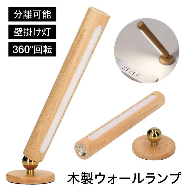 木製 ウォールランプ ブランケットライト ウォールライト 充電式 工事不要 分離可能 360°回転 LEDライト おしゃれ インテリア 防災グッズ プレゼント wall-lamp