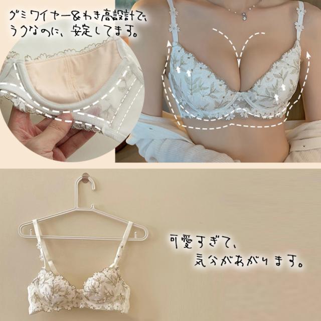 ワイヤー入りブラ ブラジャー 花柄刺しゅう 下着 ナイトブラ 刺繍 脇高 小胸 盛れる 中学生 高校生 送料無料 Aカップ AAカップ Bカップ Cカップ 単品ブラ 大人 勝負下着 20代 30代 40代 50代