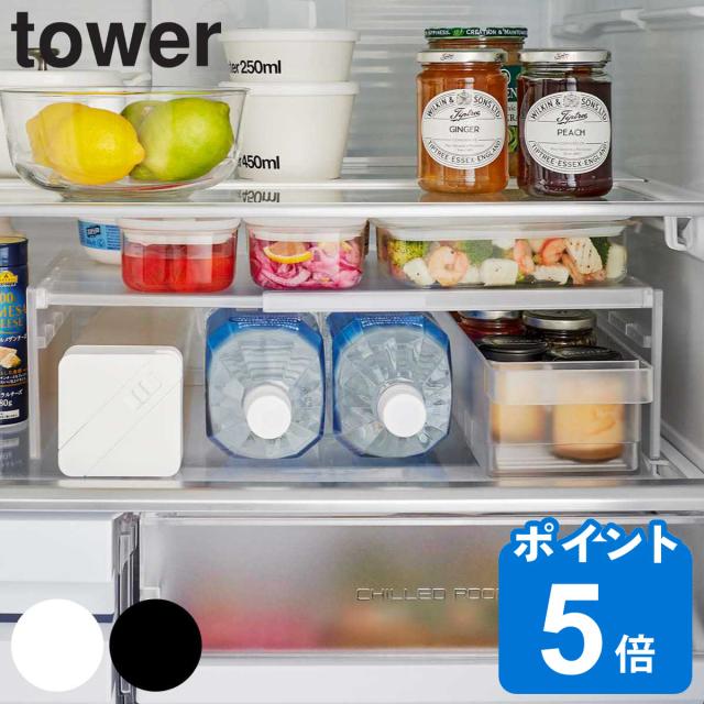 山崎実業 tower 伸縮冷蔵庫中収納ラック タワー ( 4903208080651 タワーシリーズ 冷蔵庫収納 冷蔵庫 収納 仕切り 棚 高さ調節 幅調節 伸縮 冷蔵室 整理 整頓 ホワイト ブラック )
