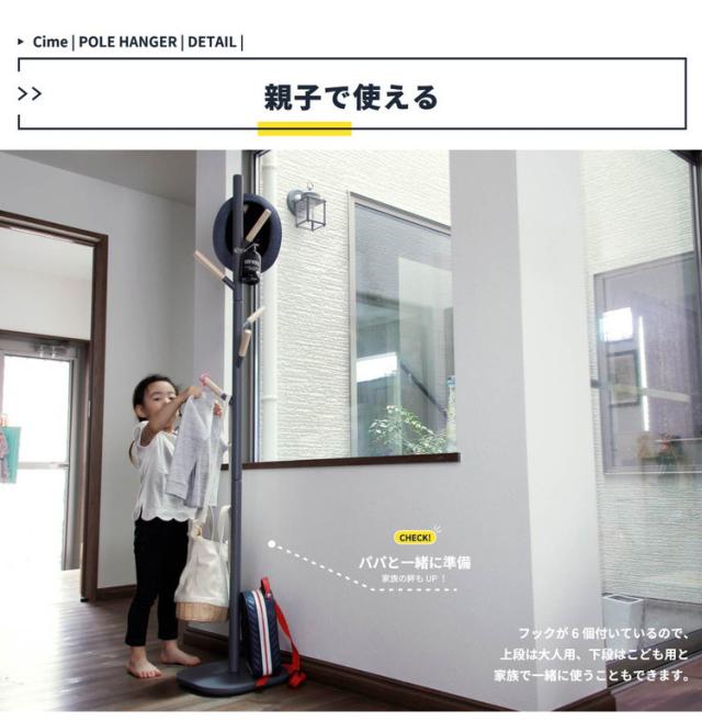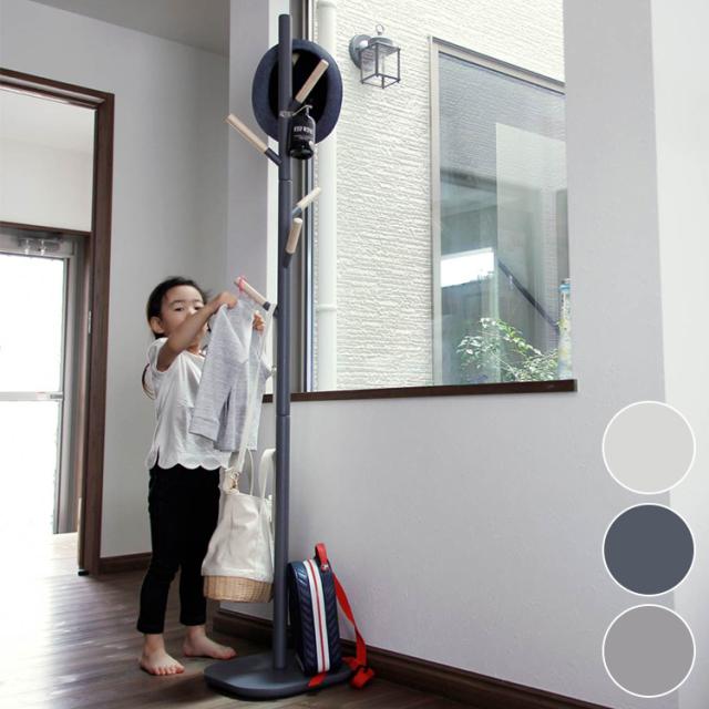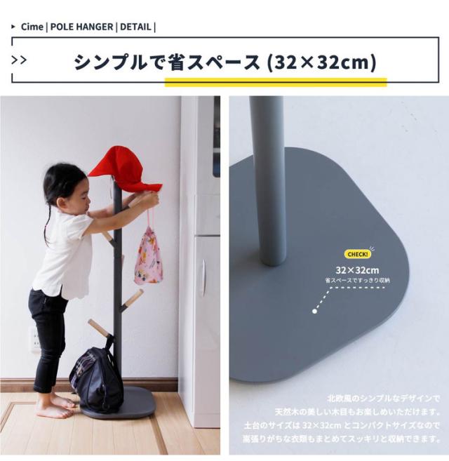 ポールハンガー 天然木 木製 おしゃれ 北欧 スリム コートハンガー シンプル 省スペース かわいい 子供部屋 リビング 玄関 帽子掛け 洋服掛け すべらない スタンド(代引不可)【送料無料】