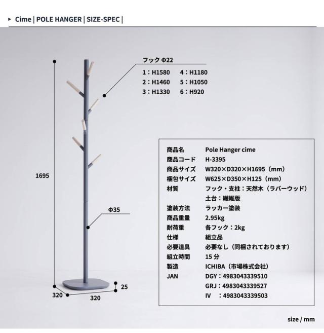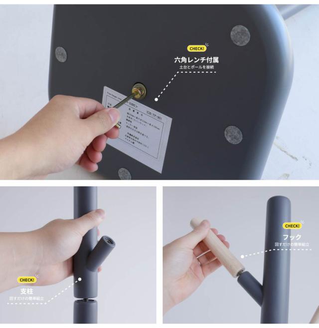 木の質感を活かしたシンプルなハンガー。お部屋のインテリアカラーに合わせて、ダークグレー、グレージュ 、アイボリーの3色からお選びいただけます。北欧風のシンプルなデザインでコンパクトなサイズ感も特徴です。