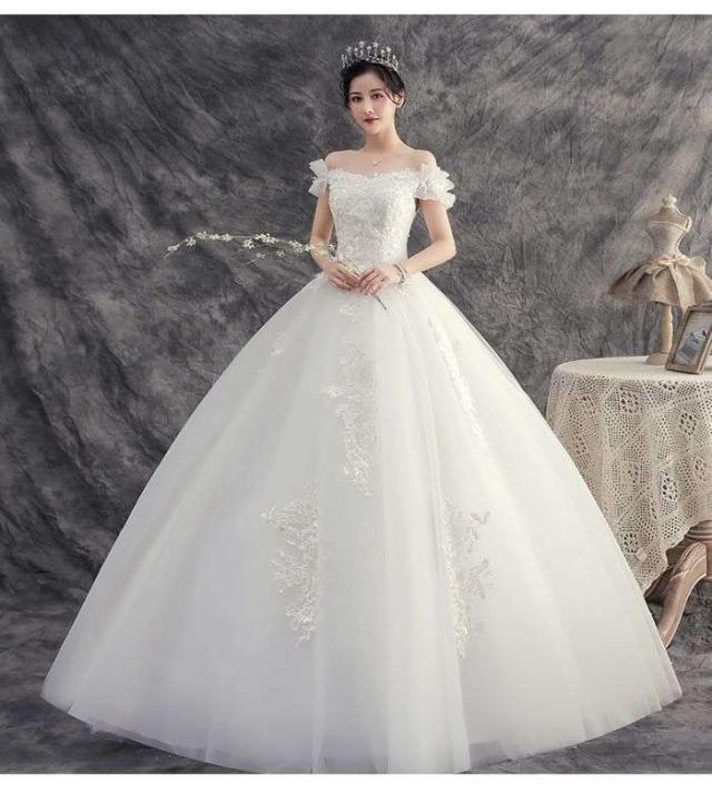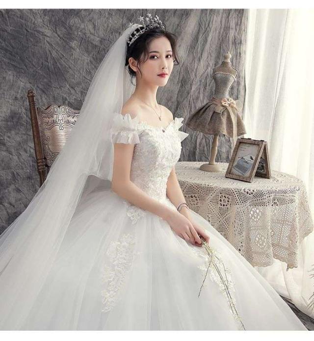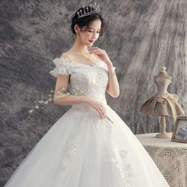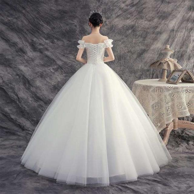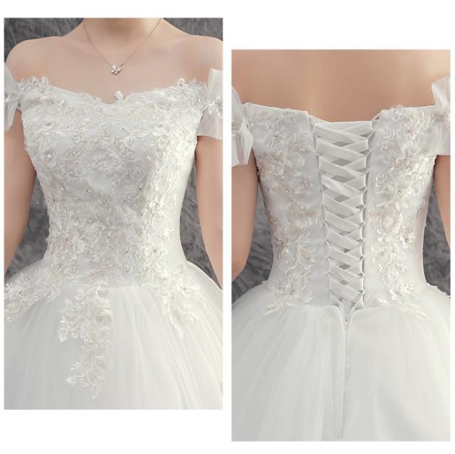 ウェディングドレス プリンセスライン ロングドレス プリンセスドレス ホワイト クラシカル 新入荷 ビーズ 刺?柄 花嫁 オフショルダー お嫁さん 結婚式 編み上げ シンプル
