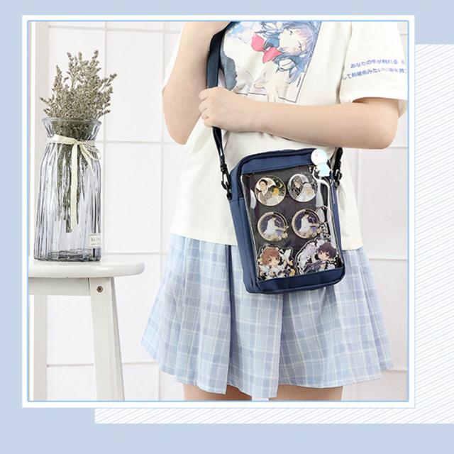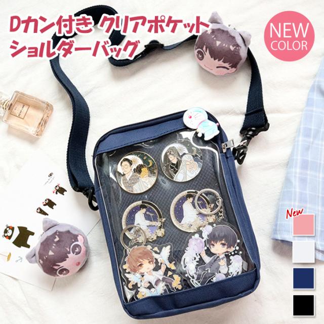 新作 Dカン付き 縦型 クリアポケット ショルダーバッグ レディース クリアバッグ 小さめ ミニバッグ 軽量 透明 おしゃれ かわいい 斜めがけ 肩掛け イベント ライブ 痛バッグ 缶バッジ 缶バッチ 推し活 オタク