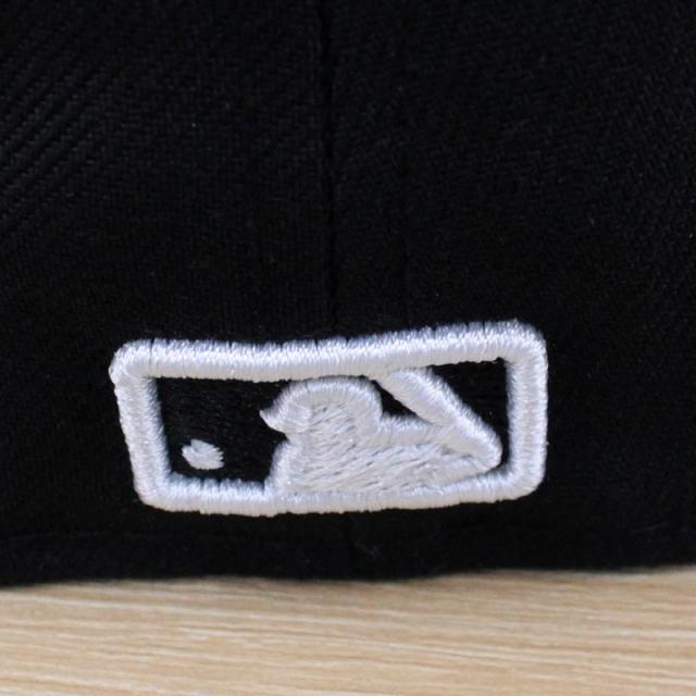 フロントにチームロゴ刺繍、バックにMLBアイコン、サイドにニューエラアイコンを刺繍で配置。