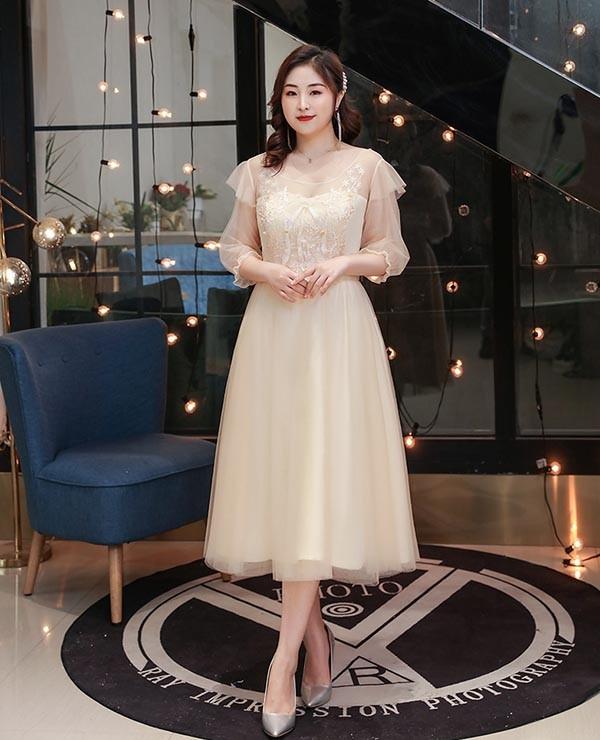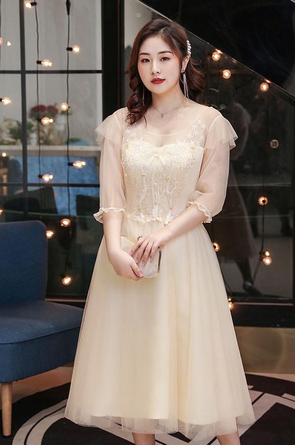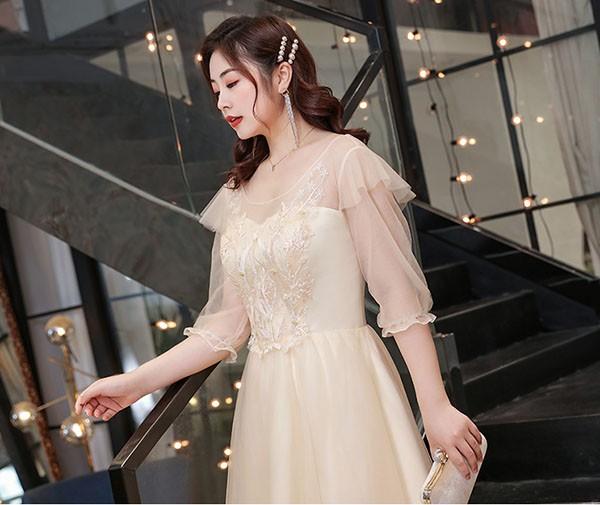 【送料無料】ドレス 大人 ピアノ 発表会 ミモレ丈 ぽっちゃり 大きいサイズ 刺? イブニングドレス 演奏会 ピアノ発表会 袖付き ワンピース Aライン