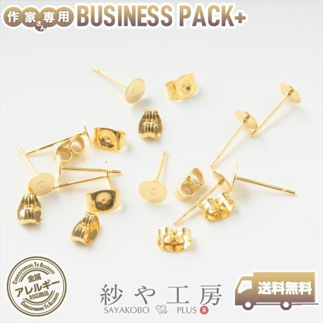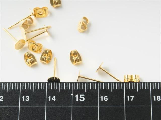 【内容詳細】ビジネスパック ピアスパーツ 316L ステンレス キャッチ付 5mm平皿付 12mm ゴールド 100ペア 約1.2cm