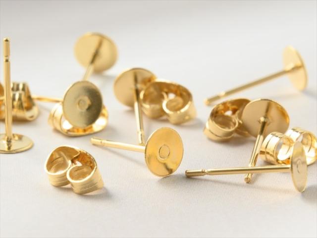ピアスパーツ 316L ステンレス キャッチ付 5mm平皿付 ゴールド 100ペア 200個 アクセサリー パーツ 金属アレルギー対応 サージカルステンレス ポストピアス 全長12mm 約1.2cm 問屋 ハンドメイド さや工房 手作り アクセサリーパーツ 卸 おすすめ