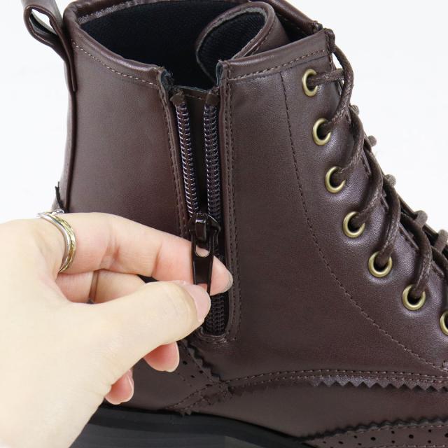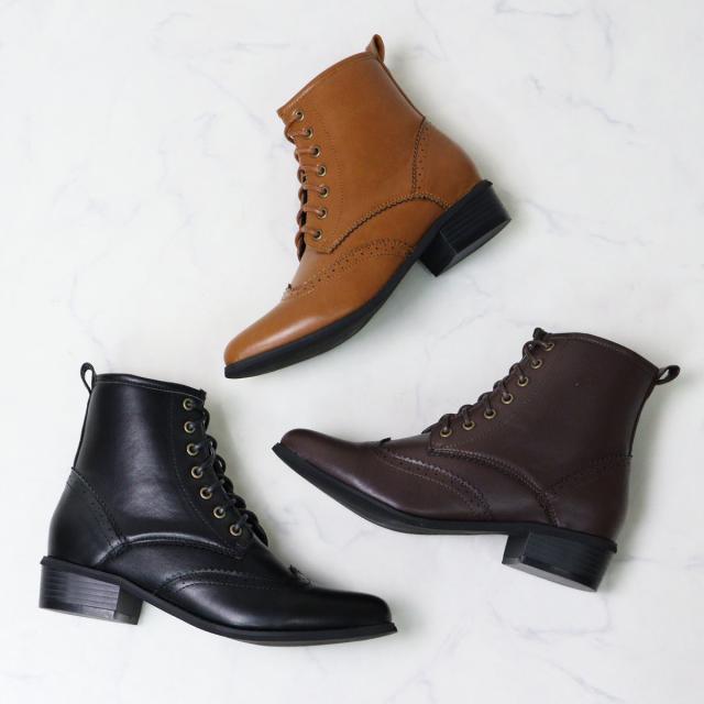 幅広いコーデに合わせやすいレースアップデザインで、サイドジップタイプだから足入れもしやすく、すっきりとしたシルエットでお履きいただけます。