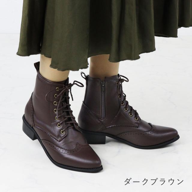 ブーツ レディース レースアップ サイドジップ ポインテッドトゥ ショート丈 2E 合皮 袴 編み上げ 3cmヒール No.9002 22.0cm〜25.0cm 黒 リバティードール