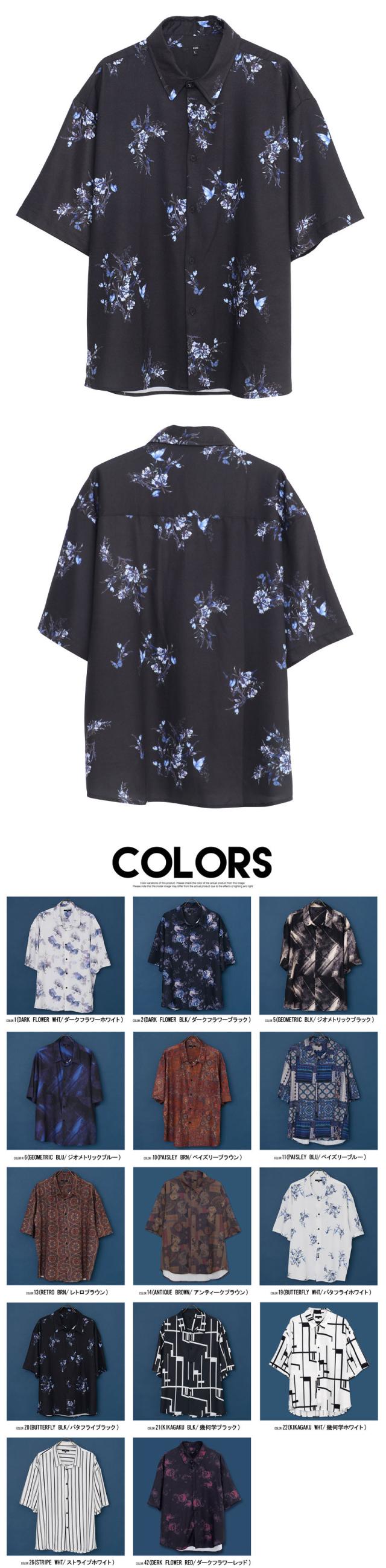 シャツ メンズ おしゃれ 総柄シャツ ジョーゼット プリント 大きいサイズ 半袖 半袖シャツ ドレープ 大人 上品 とろみ 柄シャツ ペイズリー ゴブラン ストライプ ユニセックス 服 父の日 春 夏 春服 夏服 ファッション メンズファッション 郵 即日発送 [224-50]