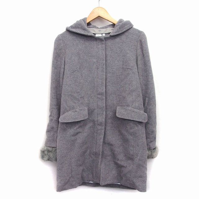 【中古】アースミュージック&エコロジー EARTH MUSIC & ECOLOGY フード コート ミディ丈 フェイクファー 起毛 総柄