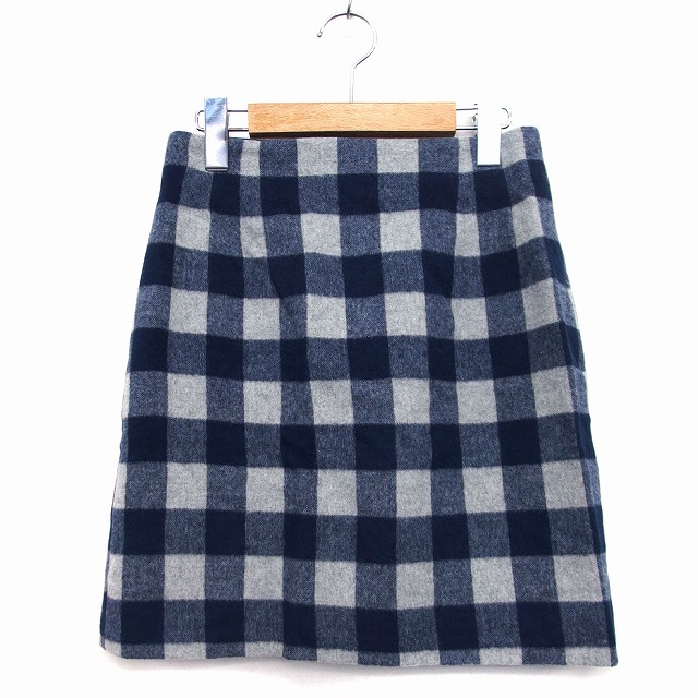 【中古】ビーラディエンス BE RADIANCE 台形 スカート ミニ 膝上 ギンガムチェック 柄 起毛 タック ウール混 M