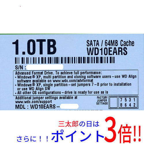 【1日と三太郎の日はポイント3倍!!】【新品】送料無料 ウェスタンデジタル Western Digital製HDD WD10EARS 1TB SATA300 3.5インチ