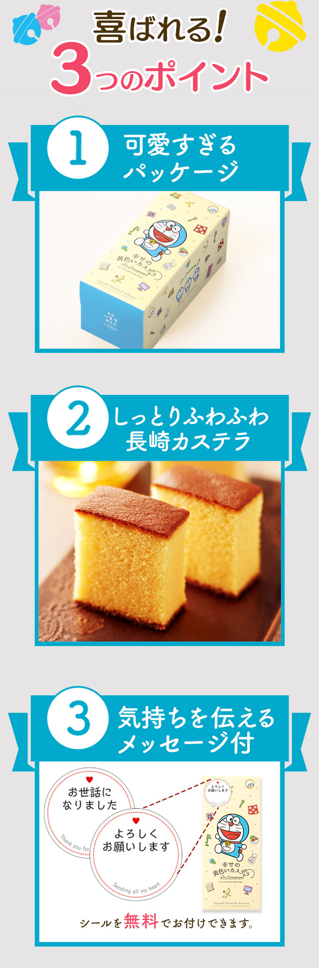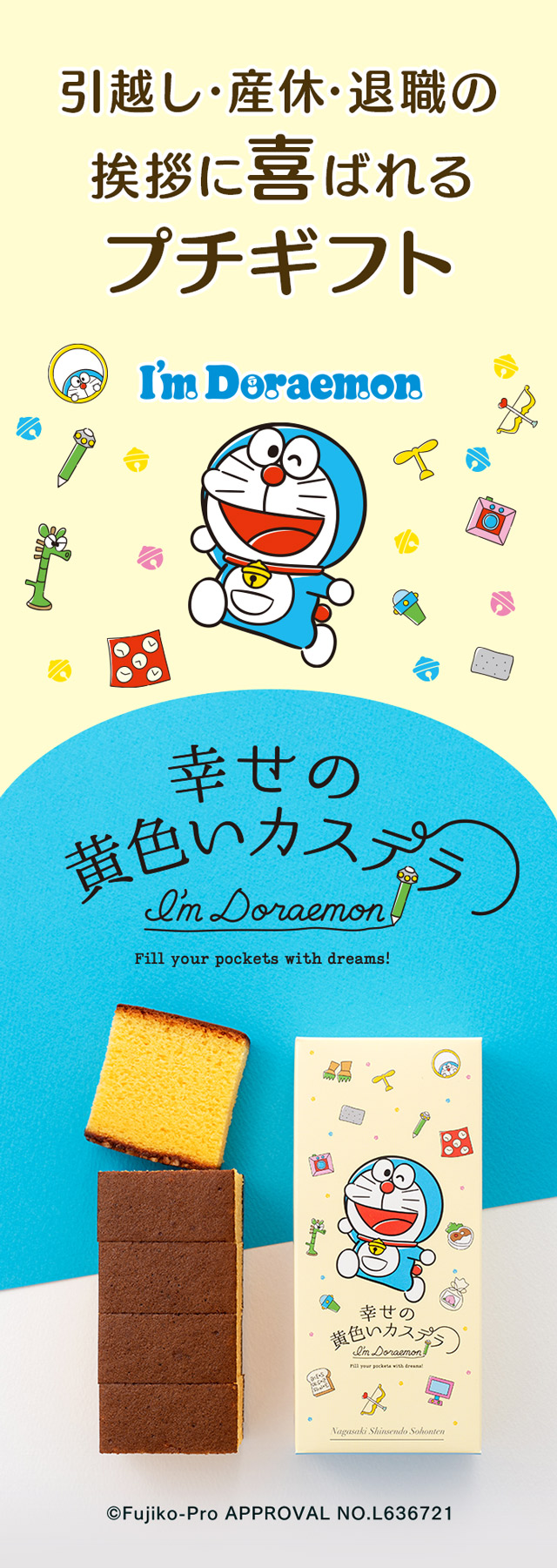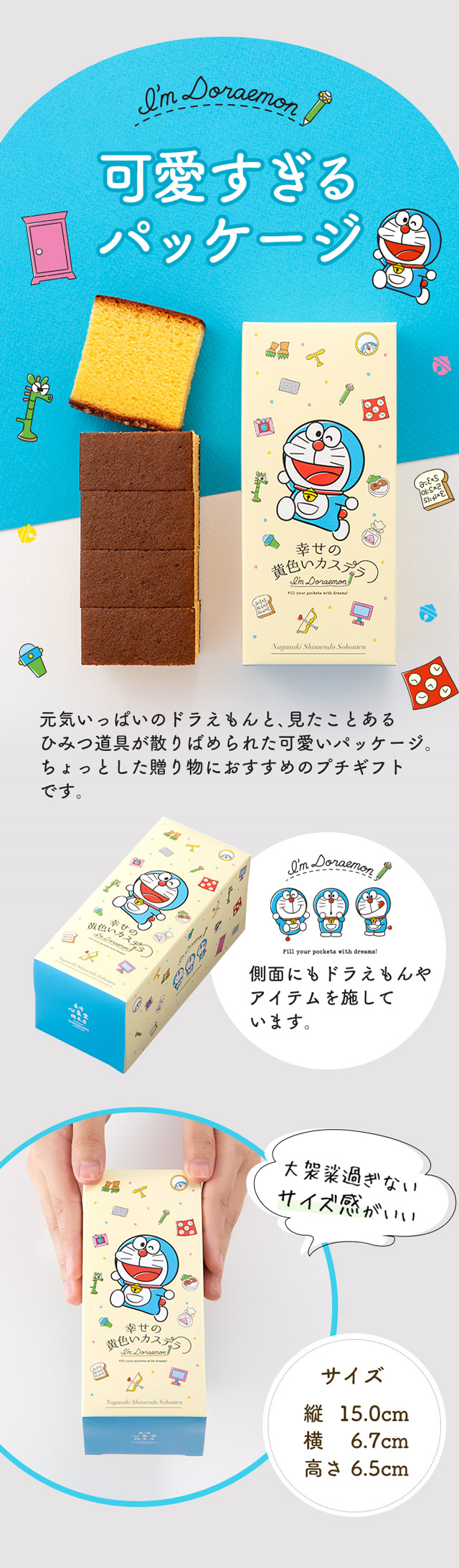 [ 産休 育休 退職 プチギフト お菓子 挨拶 プレゼント ギフト ] ドラえもん 長崎 カステラ ハーフ 0.3号 T340 [ スイーツ 和菓子 子供 ] お礼 引っ越し お世話になりました お返し 洋菓子 送別 可愛い キャラクター 柄 よろしく 2025