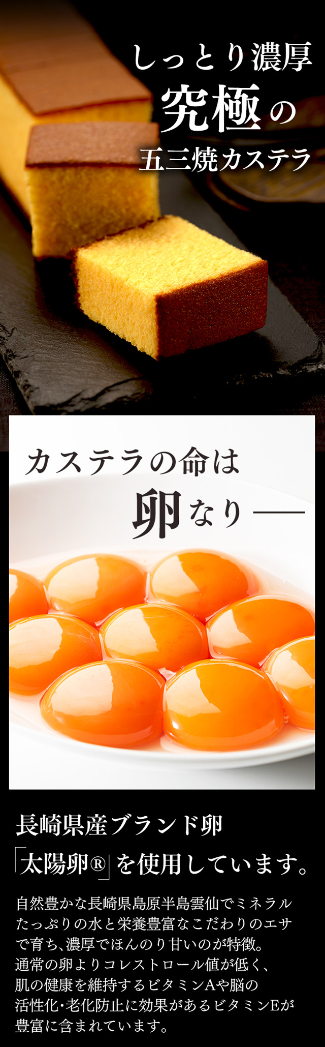 鶏卵(国産)、砂糖、小麦粉、米飴、ザラメ糖、蜂蜜、(一部に卵・小麦を含む)