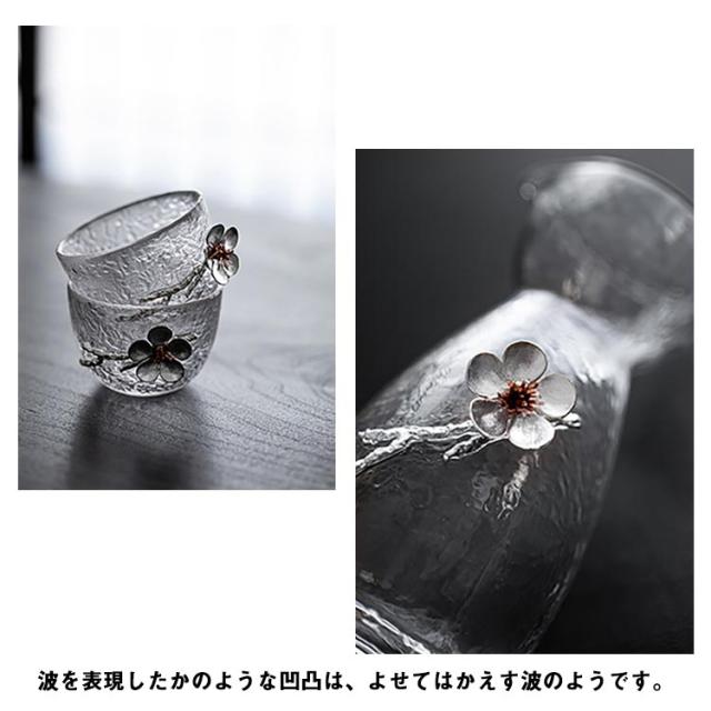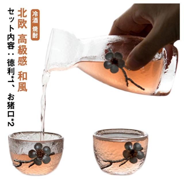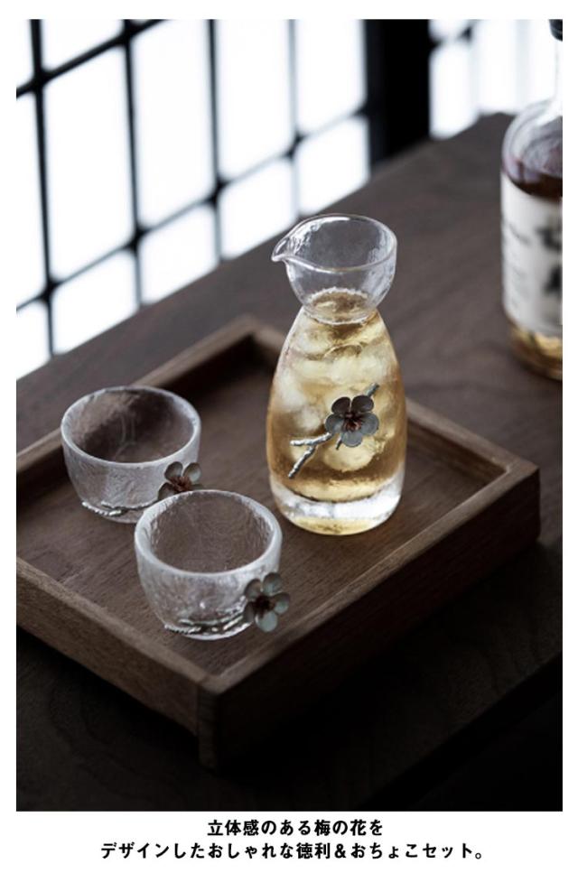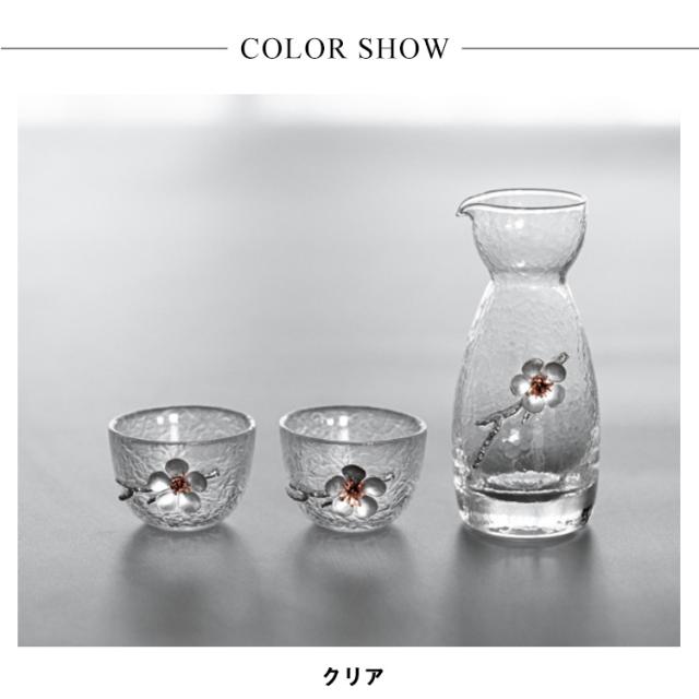 ぐい呑み 花柄 クリア ガラス 梅 日本酒 徳利 和酒 酒器 透明 焼酎 お猪口 おちょこ 冷酒 とっくり 盃 杯 敬老の日 熱燗 おしゃれ 北欧 3点セット 高級感 和風 グラデーション 母 父 父の日 セット