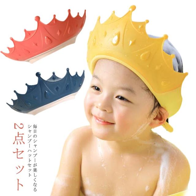 王冠 シャンプー用 子供用シャンプーハット バスグッズ シャンプーハット 2点セット バスハット シャンプーキャップ かわいい 洗髪用 サイズ調整可能 お風呂グッズ お風呂用品 ベビー用シャンプーハット バスタイム ギフト プレゼント 痛くない