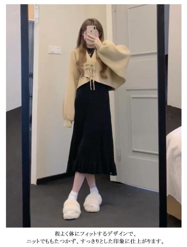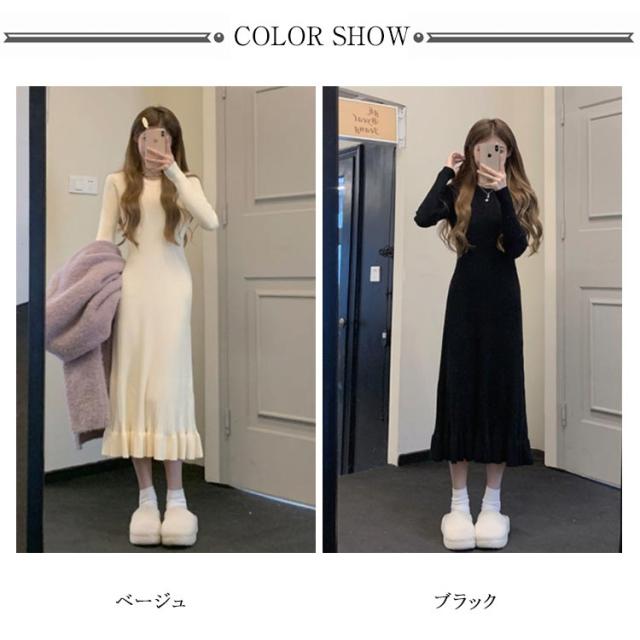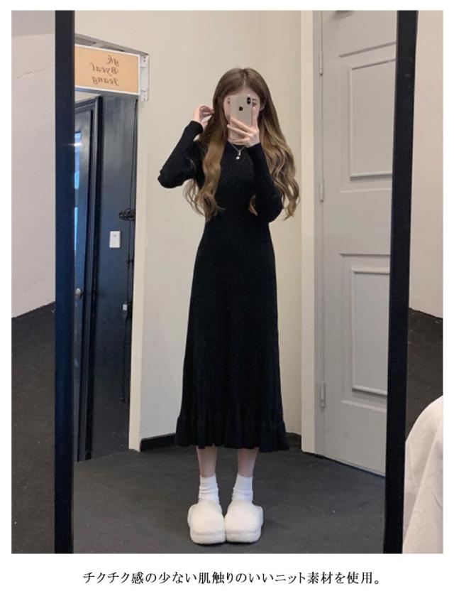 春 ニット プリーツ ニットワンピース ワンピース ロング レディース 秋冬 vネック ハイウエスト きれいめ 長袖 ブラック マキシ スリム ロングワンピース プリーツワンピース カシュクール