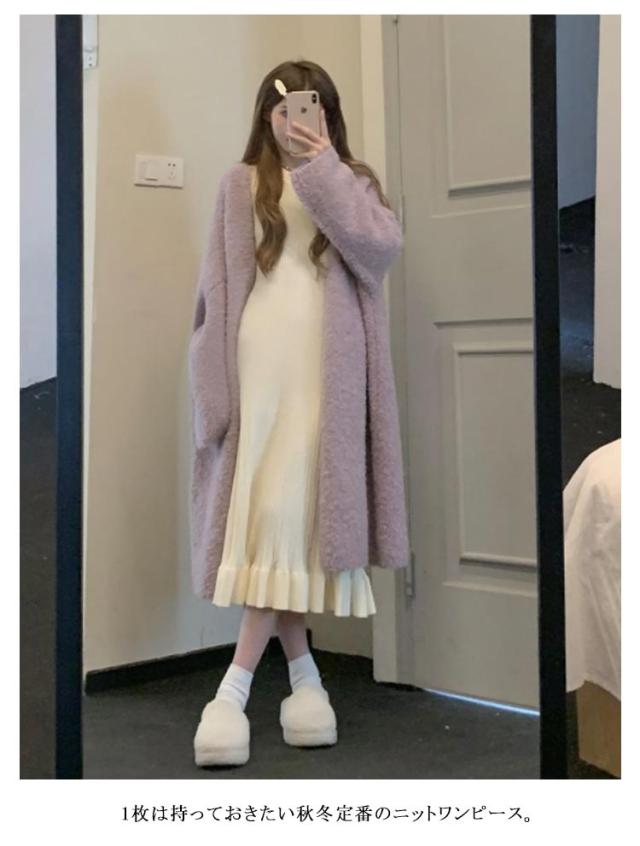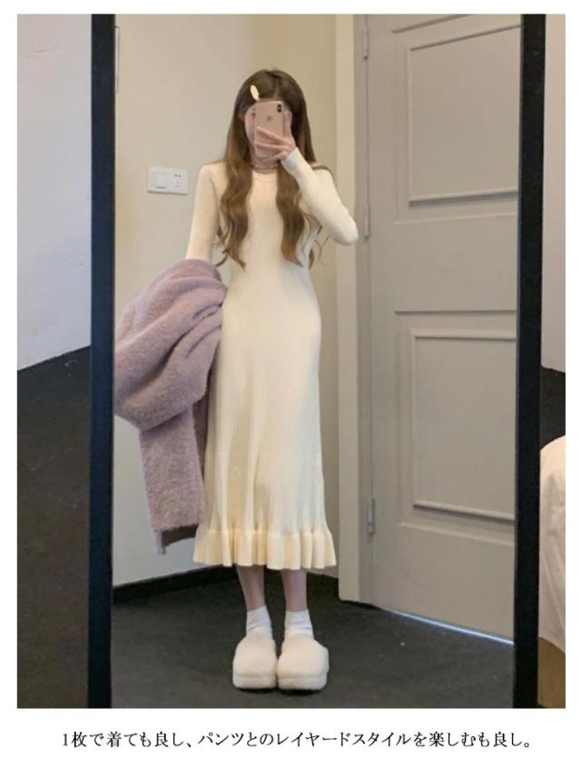 | 色々な着こなしができる優秀アイテムです。 1枚は持っておきたい秋冬定番のニットワンピース。 1枚で着ても良し、パンツとのレイヤードスタイルを楽しむも良し。 チクチク感の少ない肌触りのいいニット素材を使用。程よく体にフィットするデザインで、ニットでももたつかず、すっきりとした印象に仕上がります。 | |