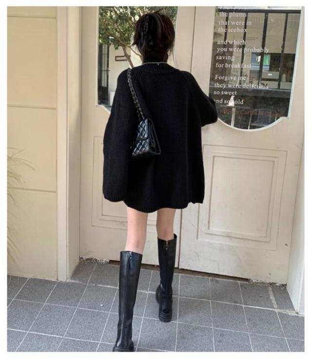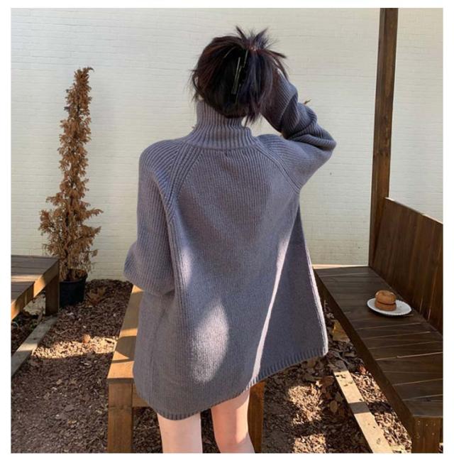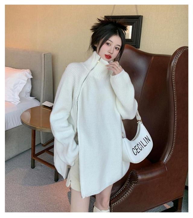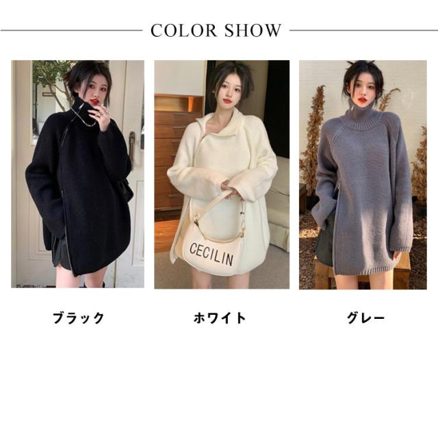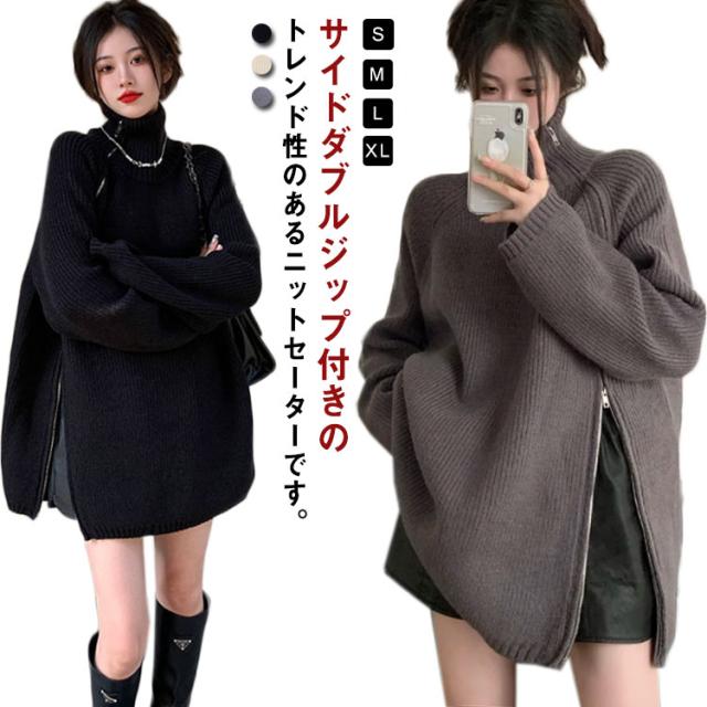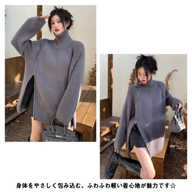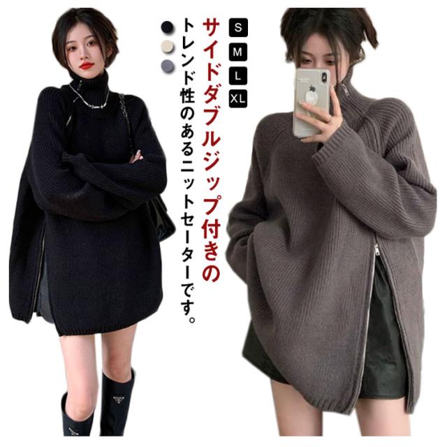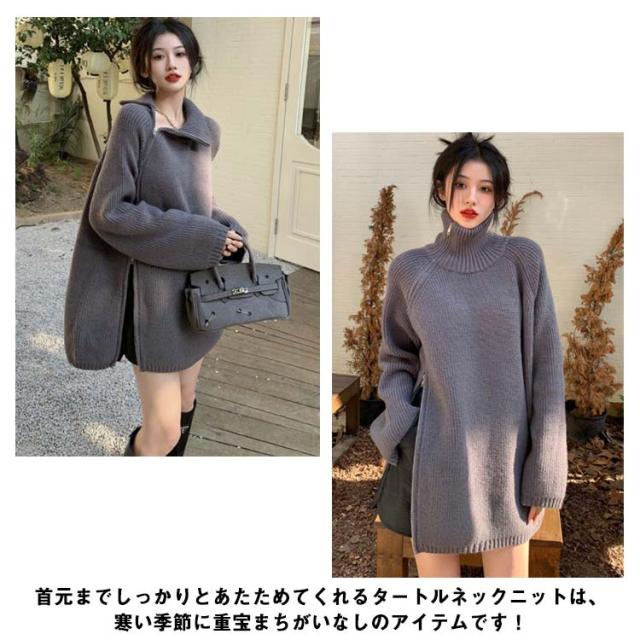 おしゃれ リブ編み ニット レディース 秋 プルオーバー ミドル丈 ハイネック セーター 春 厚手 ニット サイドスリット 冬 トップス ゆったり 大人可愛い 無地 シンプル 着回し 通勤 通学 韓国風 ニット