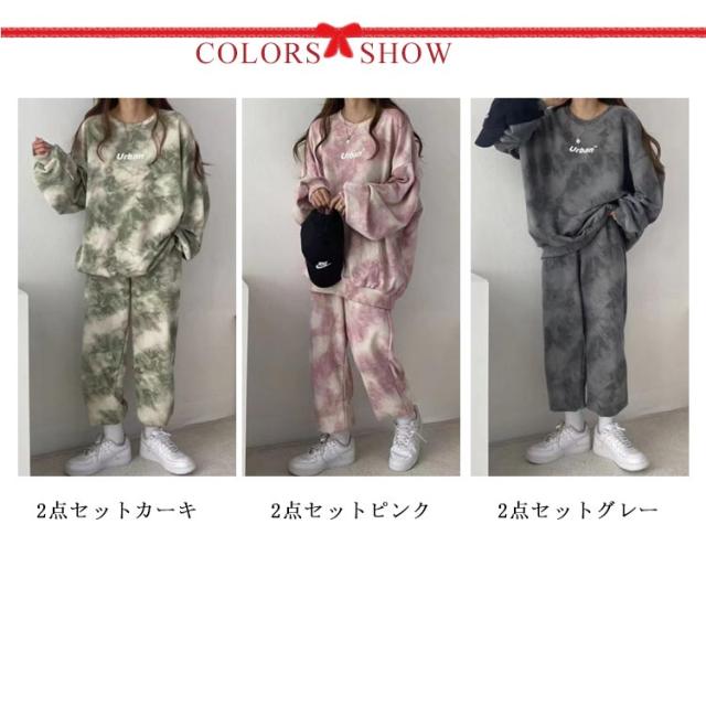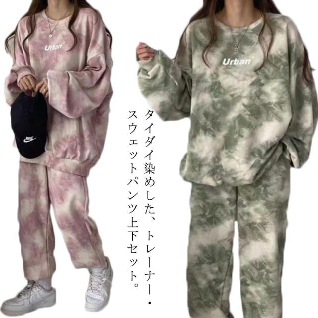 部屋着 トレーナー タイダイ染め スポーツウエア スウェットトレーナー スウェットパンツ セットアップ 長袖 レディース 上下セット ロングパンツ ナイトウェア 寝巻き パジャマ ビッグシルエット スウェット