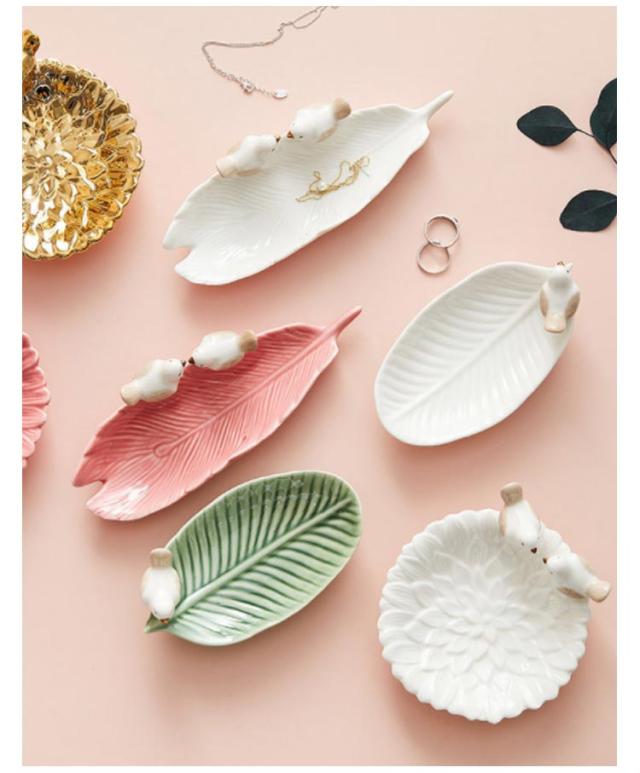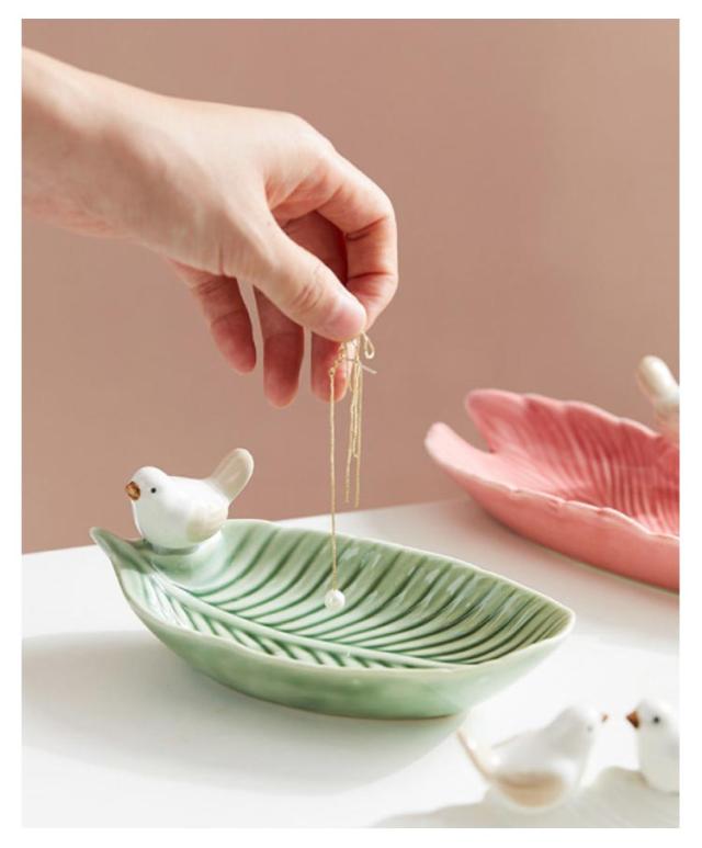 陶器 店舗 葉っぱ アクセサリートレー 北欧 小物置き 小物収納 マルチトレイー コスメ 商店 メガネ入れ カフェ 洗面所 トイレ アクセサリートレイ ジュエリートレイ