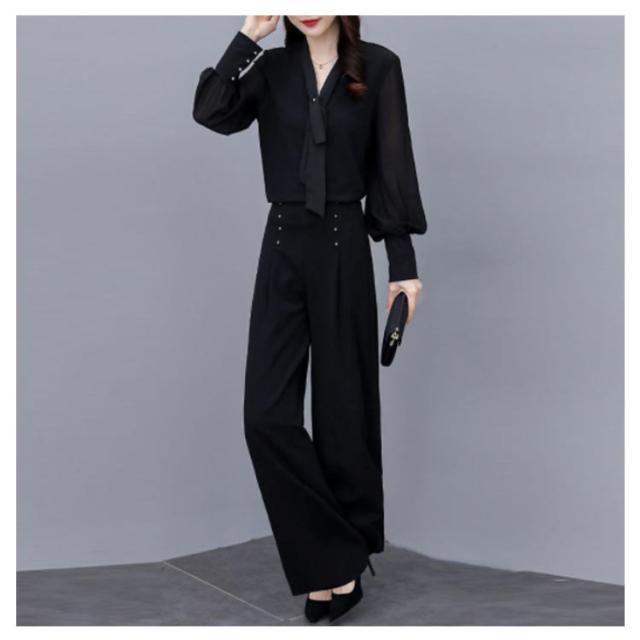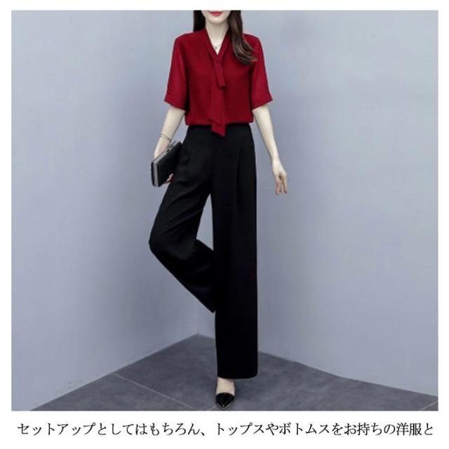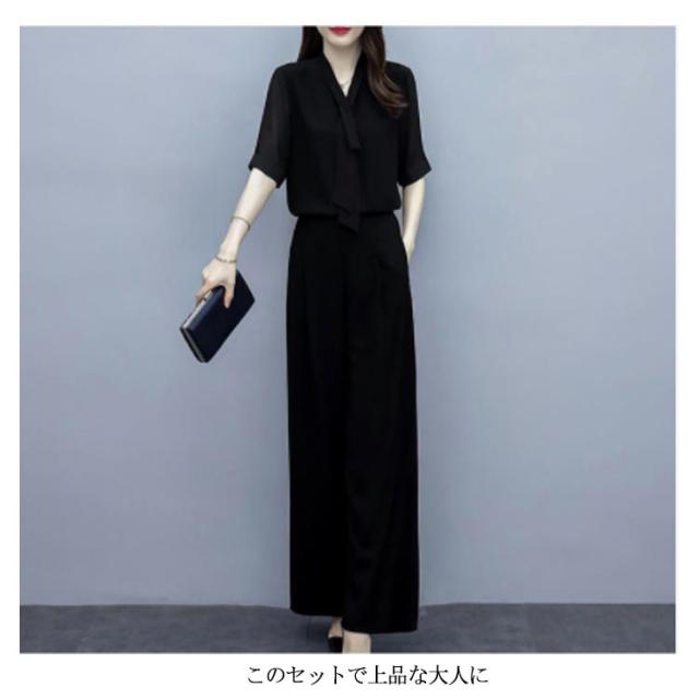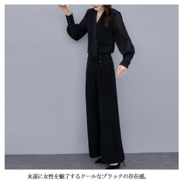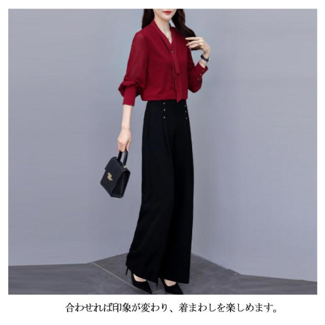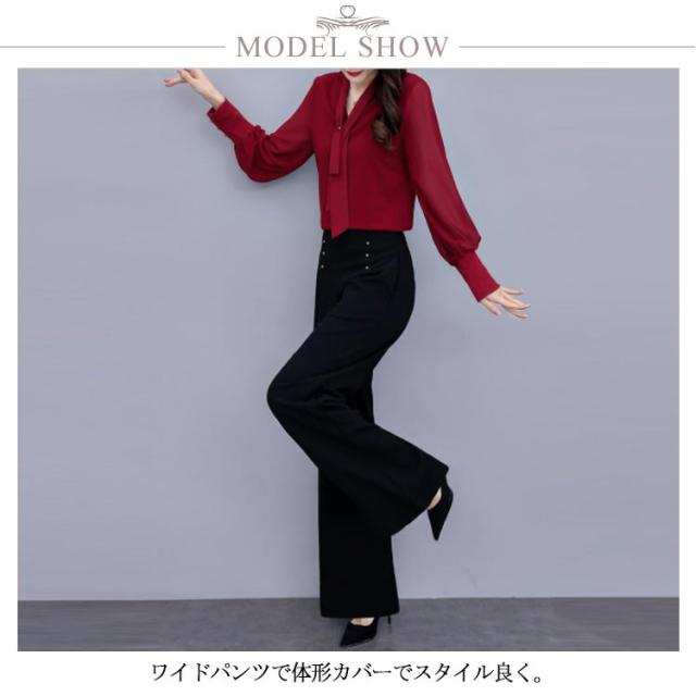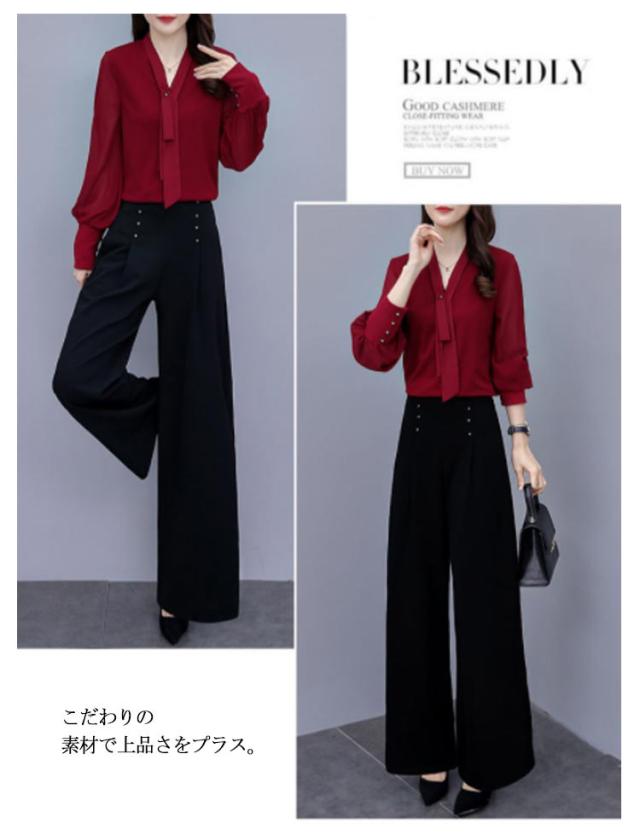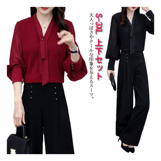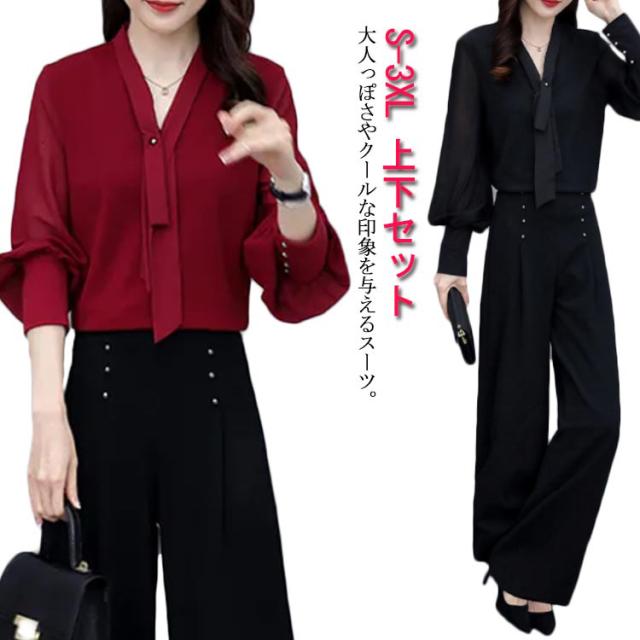 上下セット パンツドレス 【送料無料】パンツスーツ ワイドパンツ シャツ スーツ セレモニースーツ OL ロング パンツ ブラウス レディース 2点セット オフィス フォーマル 卒業式 女性 大人 ママ コーデ セットアップ 大きいサイズ 結婚式 入学式 パーティードレス