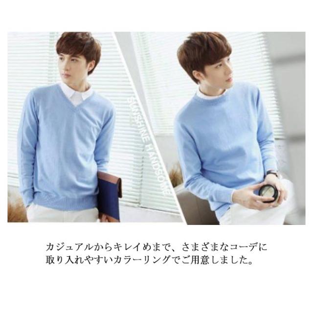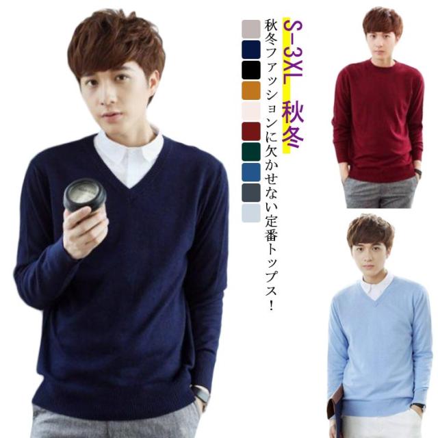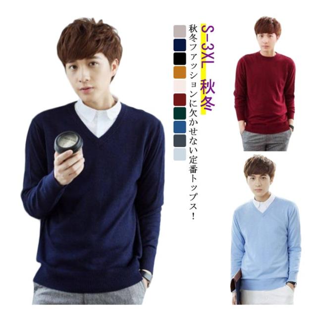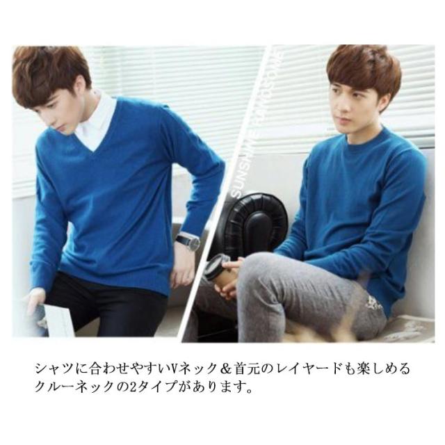丸首 ニットセーター 厚手 メンズ 長袖 ニット セーター 送料無料 重ね着 セーター ビジネス トップス プルオーバー カジュアル ソフト レイヤード Vネック 秋冬 通勤 スクール 男子 シンプル ニット