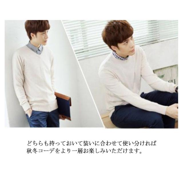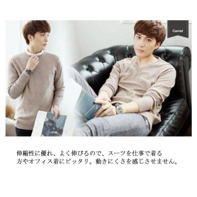 | 秋冬ファッションに欠かせない定番トップス!メンズ用プルオーバーニットセーターが新入荷。 きめ細かくてソフトな生地は決してチクチクせず、寒い季節で優しくて暖かい守りをもたらし、着心地や動きやすさ的にも申し分無し。 ごわつかない程度の厚さなので、ワイシャツの上に着てもすっきりと着こなせます。 伸縮性に優れ、よく伸びるので、スーツを仕事で着る方やオフィス着にピッタリ。動きにくさを感じさせません。 シャツに合わせやすいVネック&首元のレイヤードも楽しめるクルーネックの2タイプがあります。 カジュアルからキレイめまで、さまざまなコーデに取り入れやすいカラーリングでご用意しました。 どちらも持っておいて装いに合わせて使い分ければ秋冬コーデをより一層お楽しみいただけます。 | |