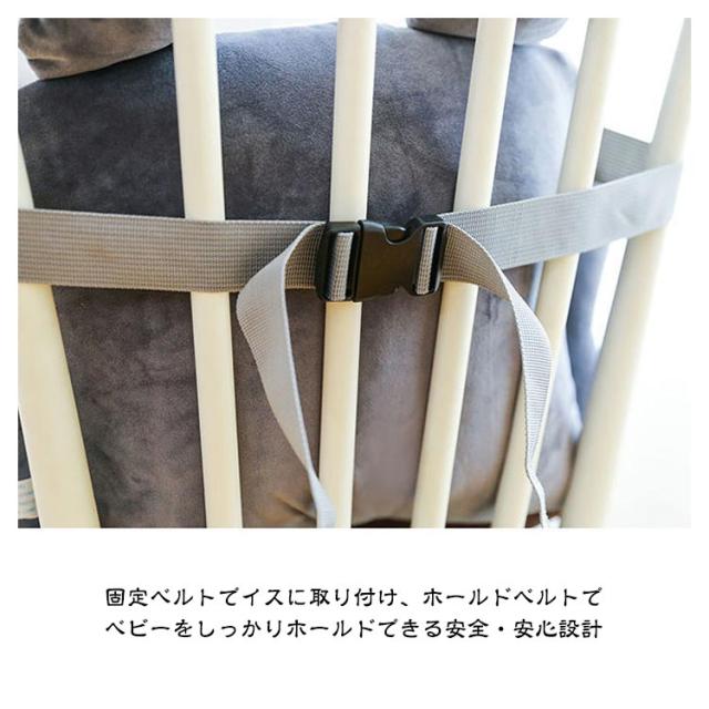 | 赤ちゃんをしっかり固定できるベビーチェア。 ひとりでお座りができる赤ちゃん、普段お使いの椅子に取り付けるだけ家族と一緒お食事できるベビーチェアに。 固定ベルトでイスに取り付け、ホールドベルトでベビーをしっかりホールドできる安全・安心設計。 ふんわり柔らかいクッションで、肌触りよく、赤ちゃんに優しい。 底には滑り止めドット付きで、安定感アップ。 軽量でコンパクトに持ち運べるから、帰省や外食など時にとても便利。 | |