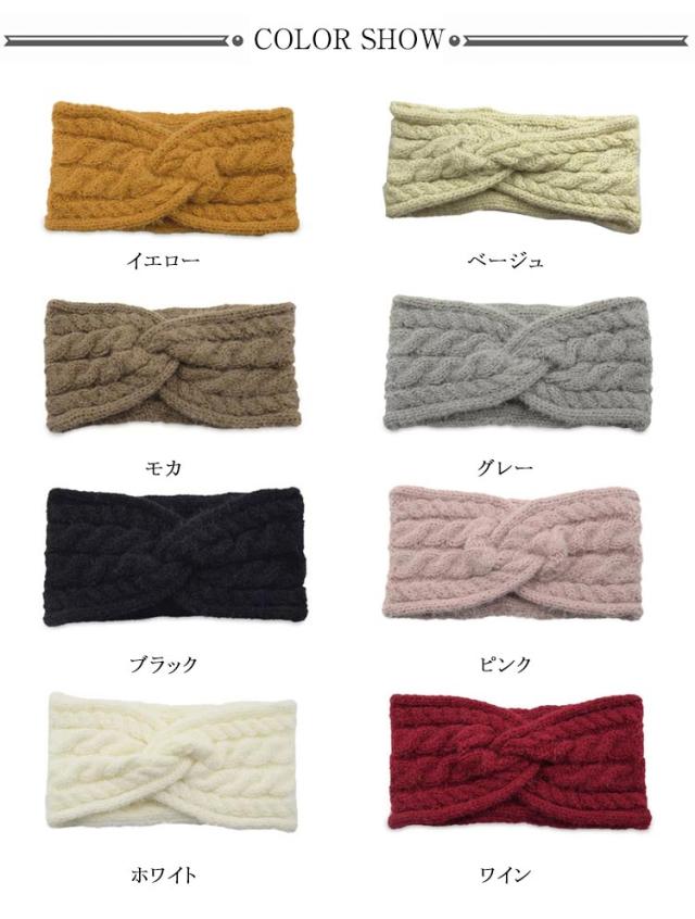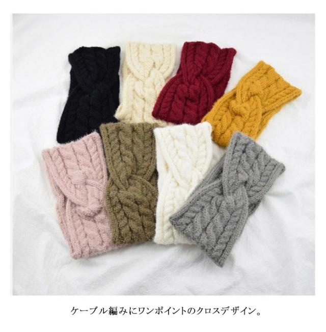 | ・あたたかみのあるニット素材でつくったヘアバンド。 ・ケーブル編みにワンポイントのクロスデザイン。 ・秋冬らしいカラー展開もポイント。 ・着けやすく、締め付け感も少ないのでおすすめです。 | |