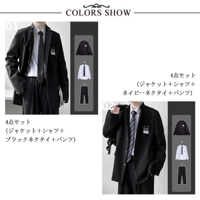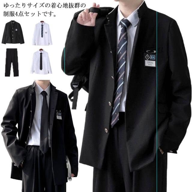 上下セット 学生ズボン コスプレ スーツ 卒業式 男子高生 スラックスパンツ 秋冬 ジャケット 細身 高校制服 中学生 高校生 上着 パンツ スクール ネクタイ シャツ 4点セット コスチューム 入学式 学生服 黒 メンズ 衣装 通学 発表会 大きめ 学園祭 仮装 制服