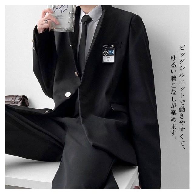 | ゆったりサイズの着心地抜群の制服4点セットです。 このセットを着るだけでかっこいいコーデが完成する。 大人っぽいモノトーンカラーで仕上げた学生服コスチュームです。 肌触り、着心地のよい素材を使って、シワになりにくい。 ウエストゴムは通っているため、締め付けなく快適にご着用いただけます。 ビッグシルエットで動きやすくて、ゆるい着こなしが楽めます。 | |