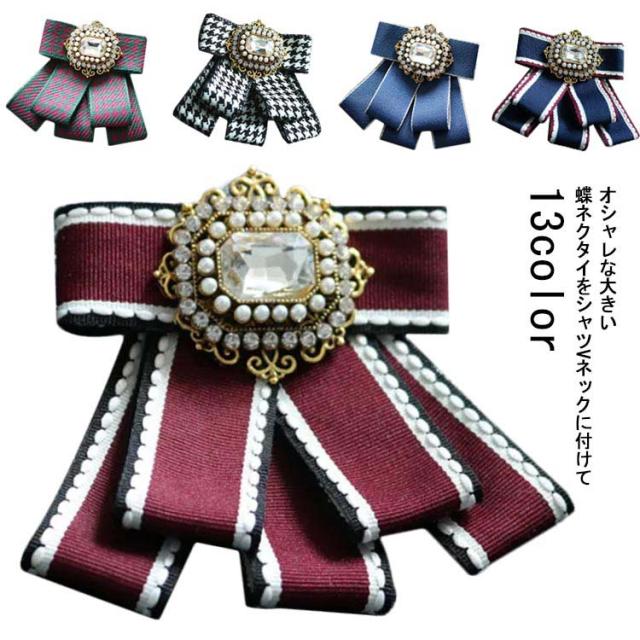 ネクタイ リボンタイ 英国風 ゴージャス リボン 子供 ユニフォーム ファッション小物 ピン イギリス ベルト ブローチ お姫様 ビジュー付き制服 大人 レディース 送料無料リボンブローチ