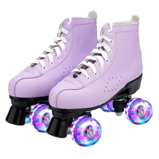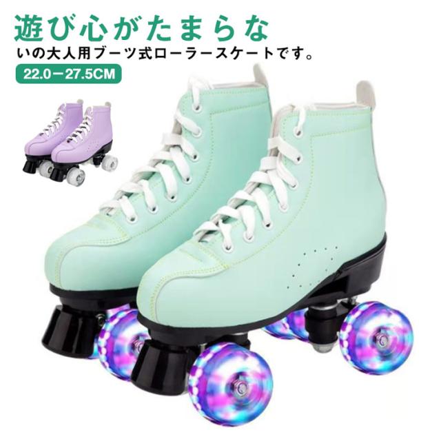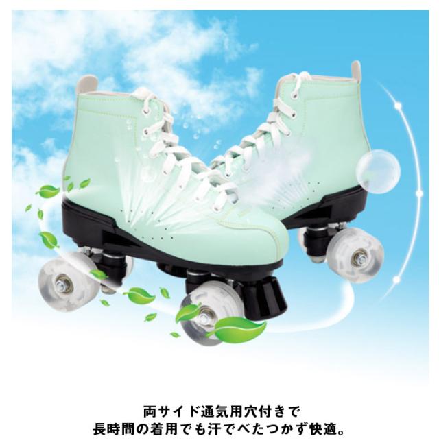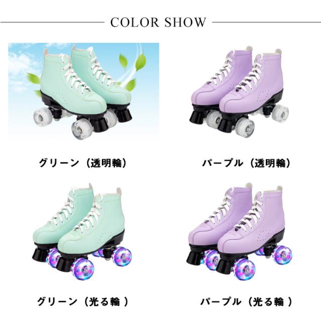レザー 大人 PU ローラーブーツ ローラースケート 四輪 インラインスケート クワッド ローラーシューズ 入門向け 初心者 スケート 通気性 バランス 運動 成人 バランス スポーツ用品 無地 シンプル パープル グリーン 二列