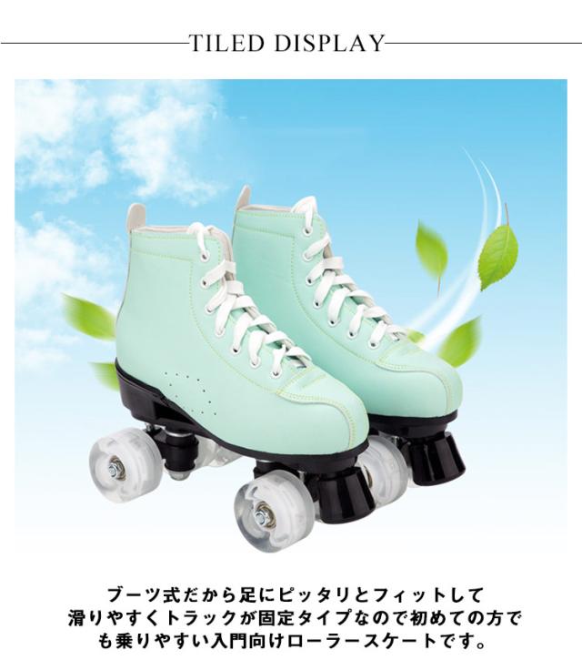 | 遊び心がたまらないの大人用ブーツ式ローラースケートです。22.0ー27.5CM ブーツ式だから足にピッタリとフィットして滑りやすくトラックが固定タイプなので初めての方でも乗りやすい入門向けローラースケートです。 2列の4輪スケートデザインにより、バランスに優れたため、選手を安全に、女性、子供、初心者の方に最適です。 耐摩耗性があるPU製のローラースケート。 両サイド通気用穴付きで長時間の着用でも汗でべたつかず快適。 お子様から大人の方までお楽しみいただけます。広場、公園などの広い場所で簡単に運動をできます。記念日、誕生日などのお祝い・贈り物(ギフト)にも適応です。 | |