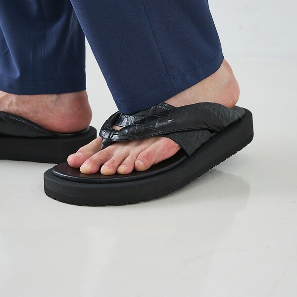 <クロコ型押し>【WRAP SHOES】ボリュームソール雪駄 トングサンダル
