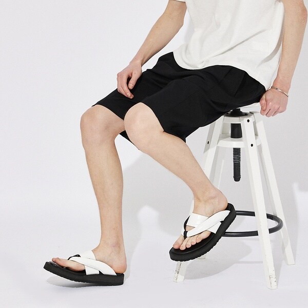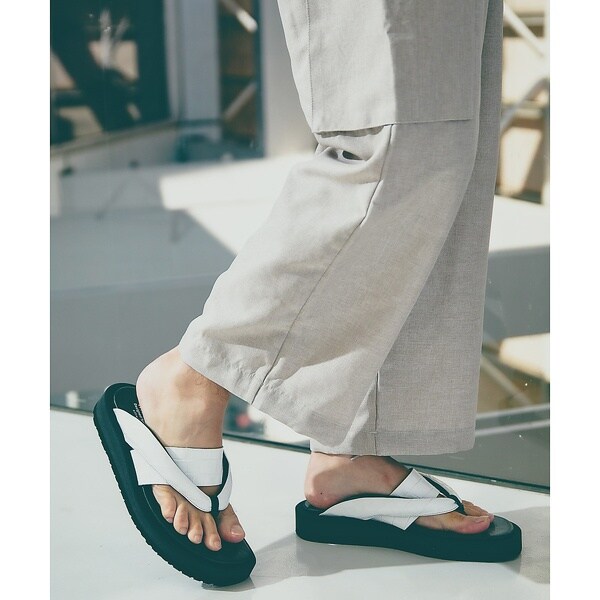 雪駄から着想したオリジナリティのあるデザインに、ワイドパンツやショートパンツに合わせやすいボリュームソールを配したモデル。