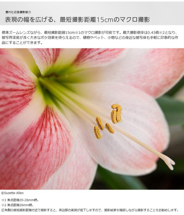 撮影距離範囲 0.15 m〜∞(W端〜焦点距離:26 mm)/0.4 m〜∞(T端)(撮像面から)