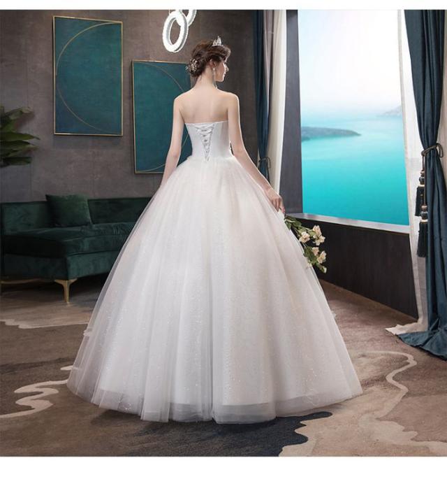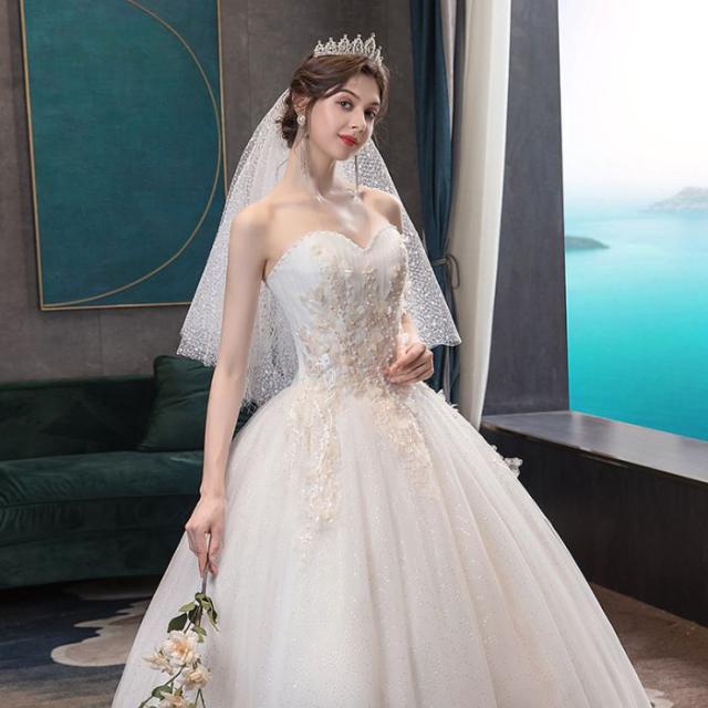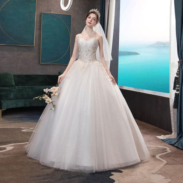 ウェディングドレス ハートカットネックビーズ 可愛い 花嫁 フランス風 ロングドレス プリンセスドレス 白色 おしゃれ お嫁さん 結婚式 編み上げ プリンセスライン