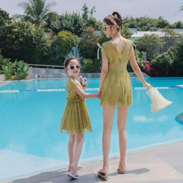 親子ペアルックswimwear 水着 体型カバー 親子コーデ 子供水着 女の子水着 韓国風 swimsuit ワンピース おしゃれ 夏 ビーチ 海 温泉 レディースファッション 水着 可愛 プール 夏新作品 水泳 新品 キッズ水着 母親 girl グリーン