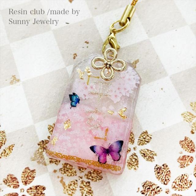 レジンの中に満開の桜が咲くように小さな桜の花を集めて一枚のシートに。