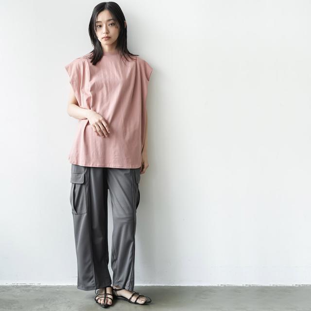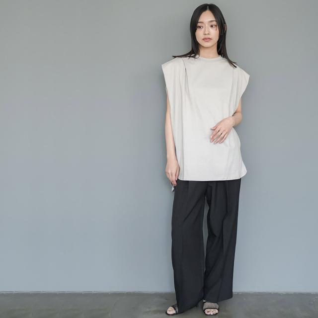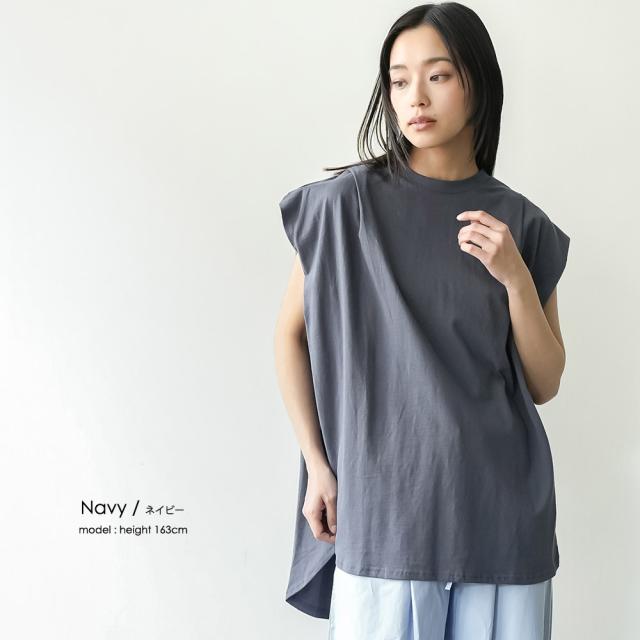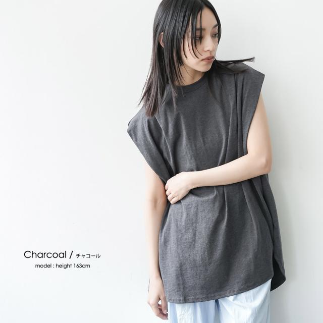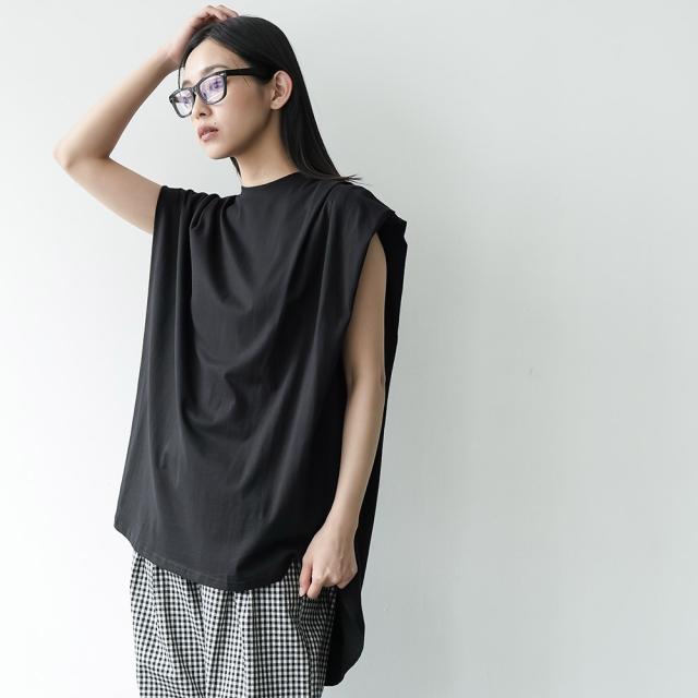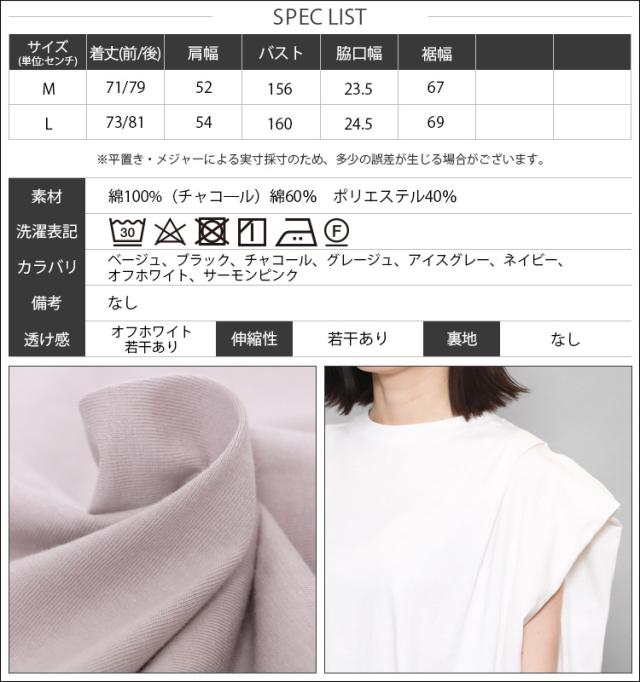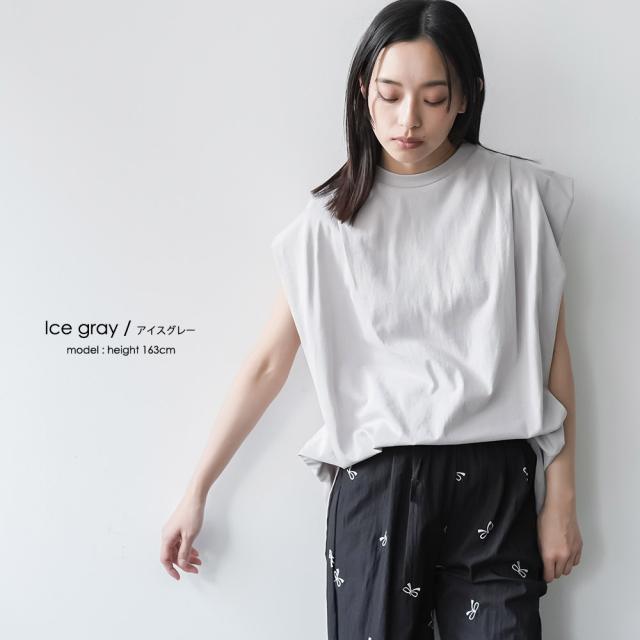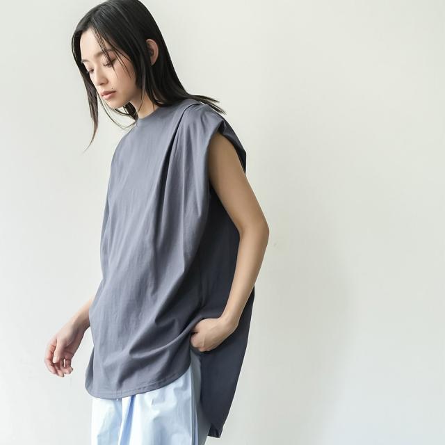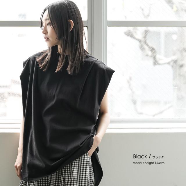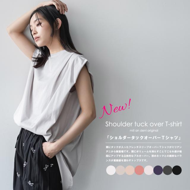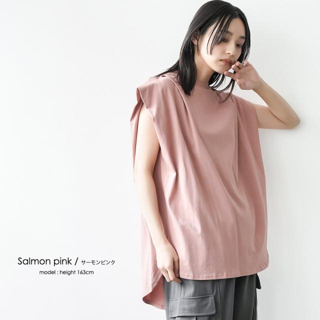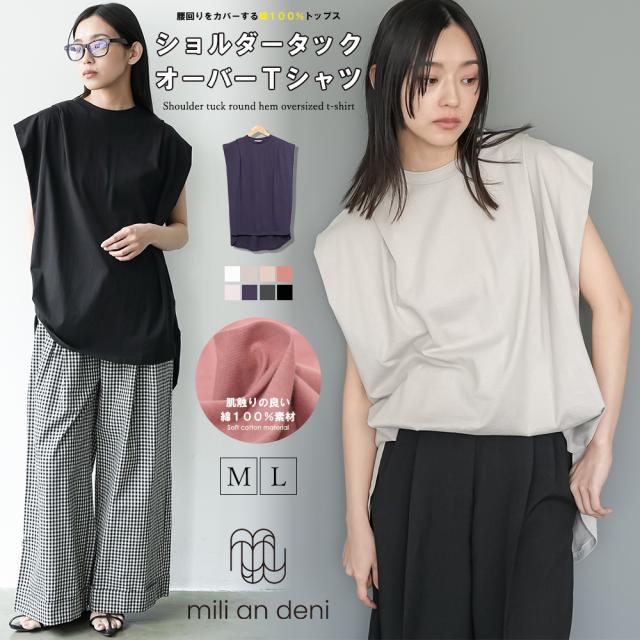 春新作 パワーショルダープルオーバー 綿100%ノースリ タック M L トップス レディース 春夏 ミリアンデニ メール便(郵1) t93005