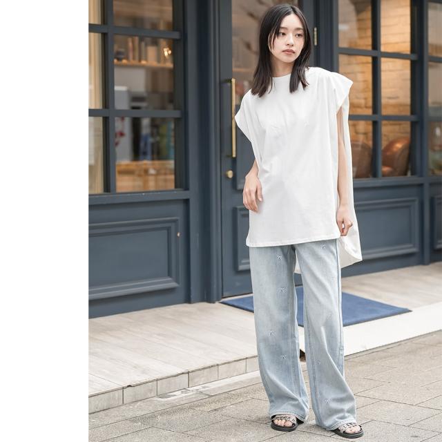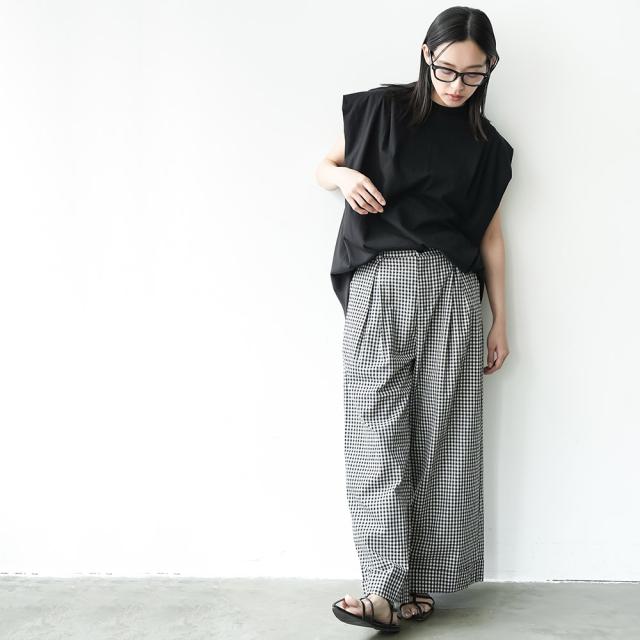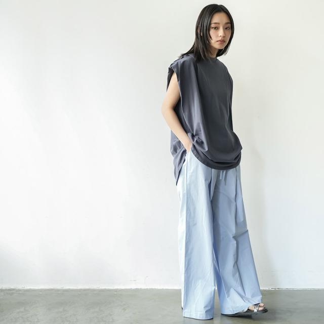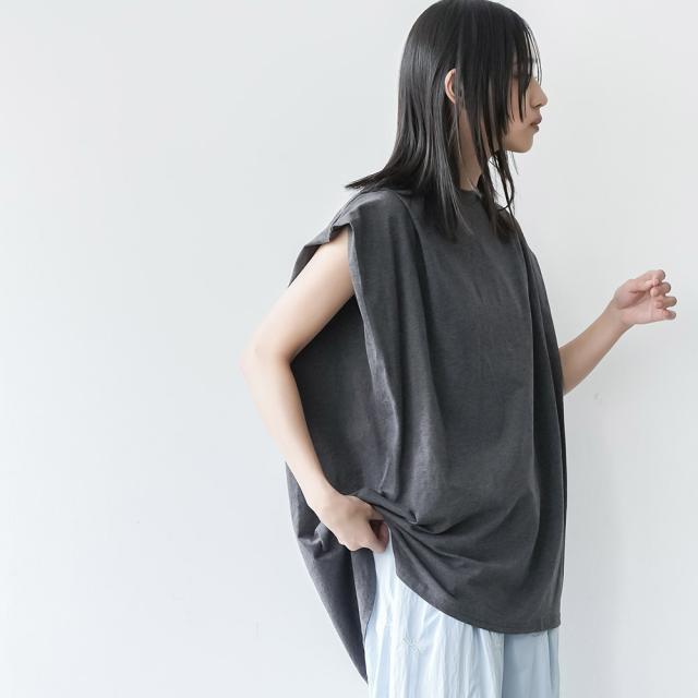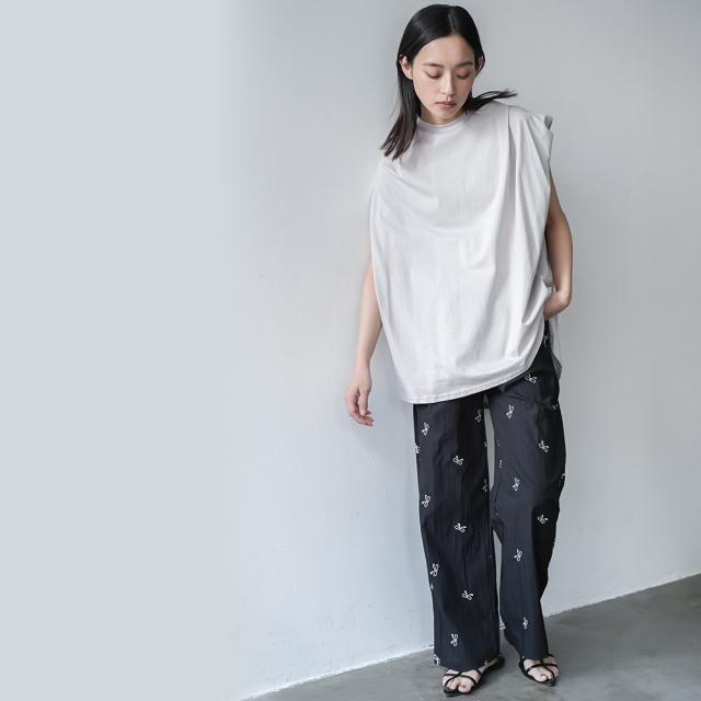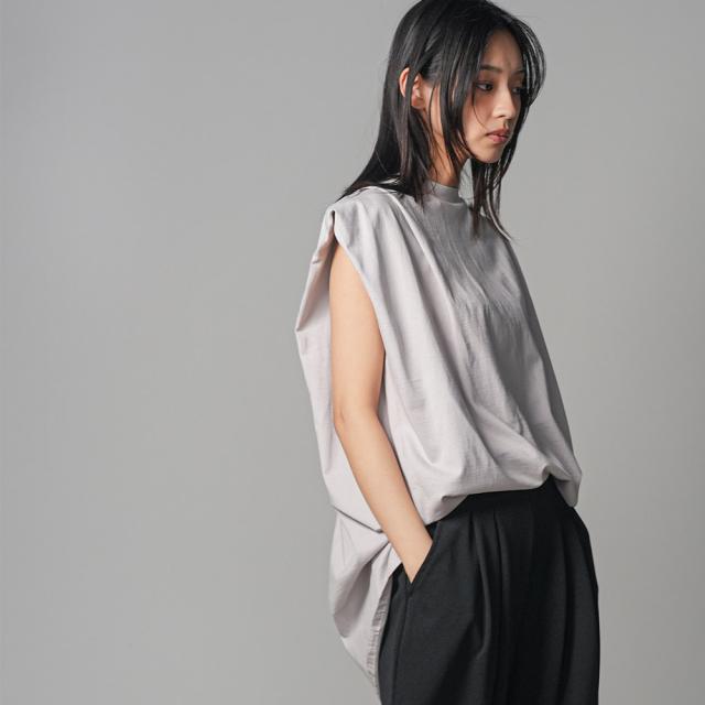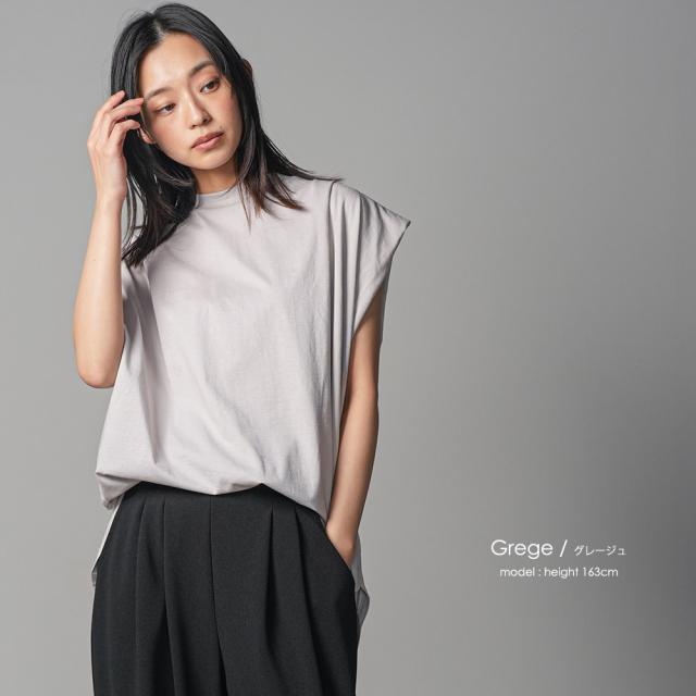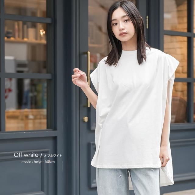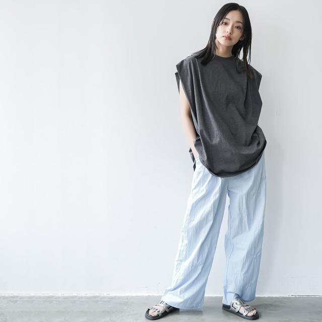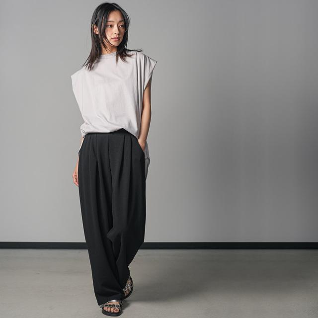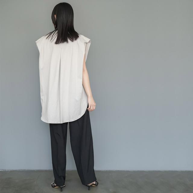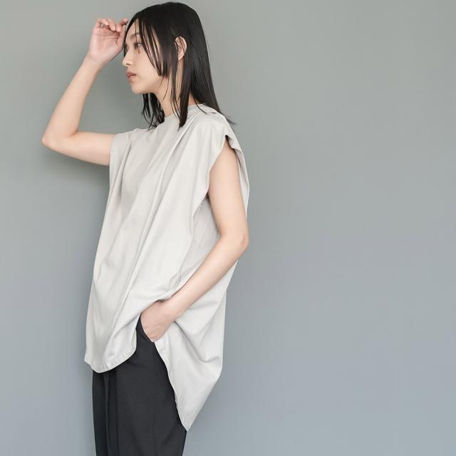 春新作 パワーショルダープルオーバー 綿100%ノースリ タック M L トップス レディース 春夏 ミリアンデニ メール便(郵1) t93005