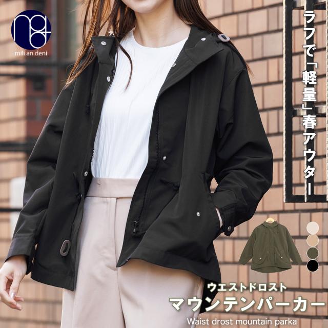 春新作 マウンテンパーカー コートアウター ジャケット アウトドア ドロスト 長袖 M L レディース 春夏 アウター ミリアンデニ a8028
