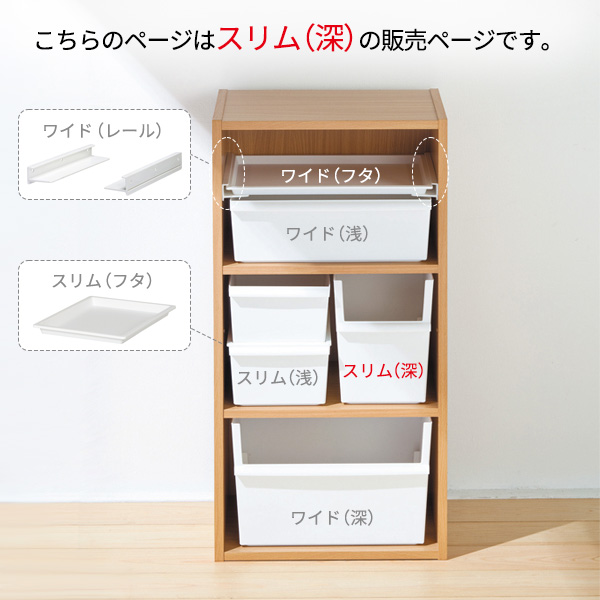 カラーボックスの1段分にぴったりサイズの深型 収納コンテナー。